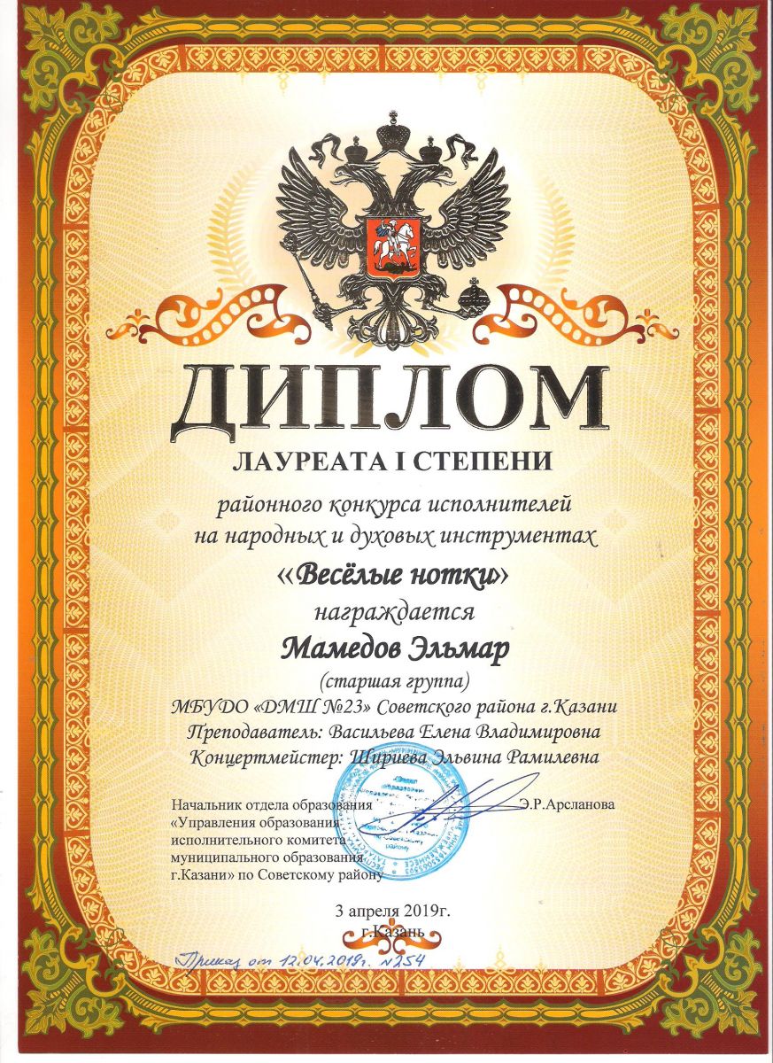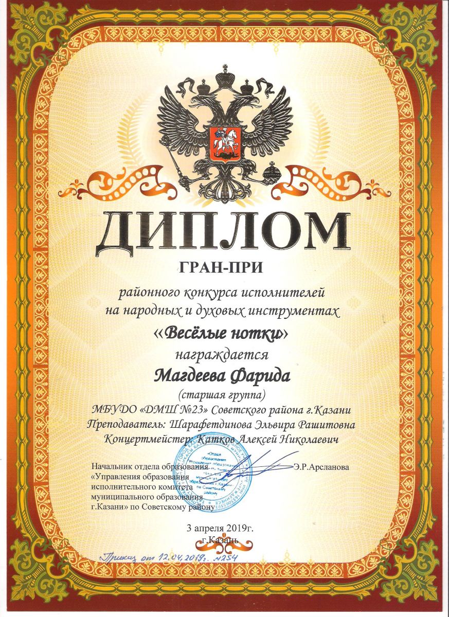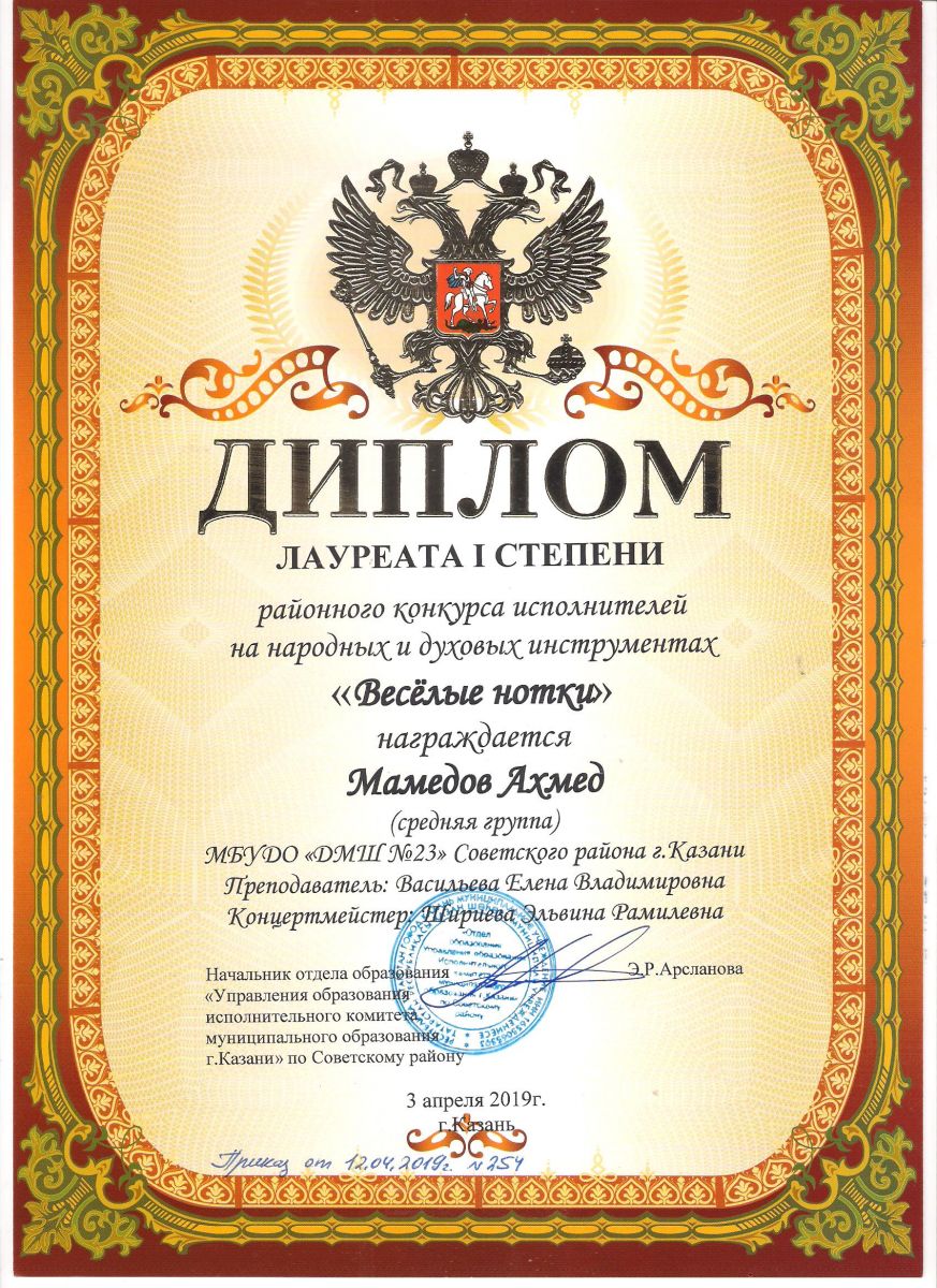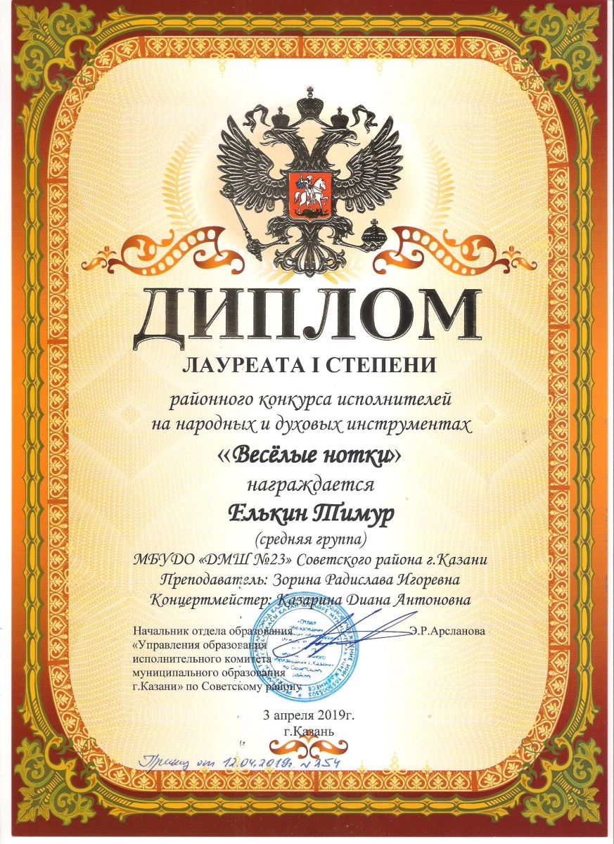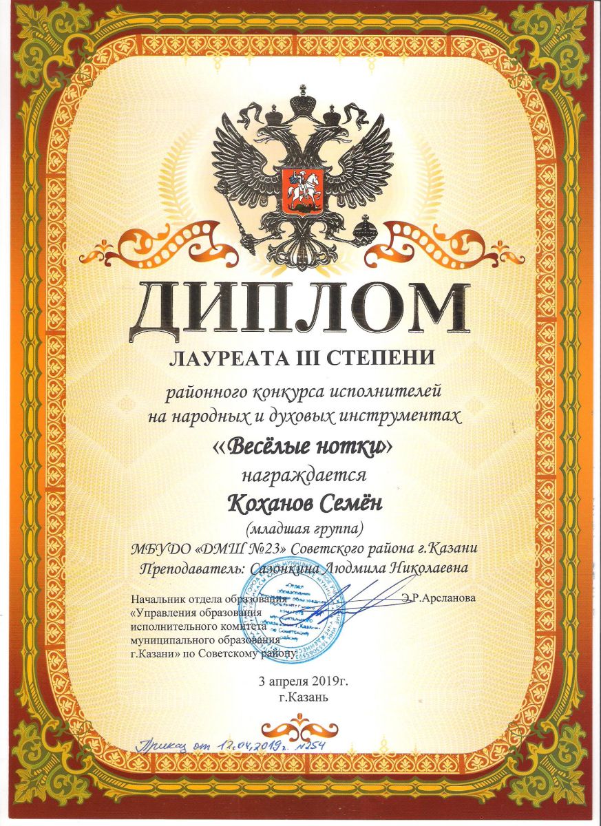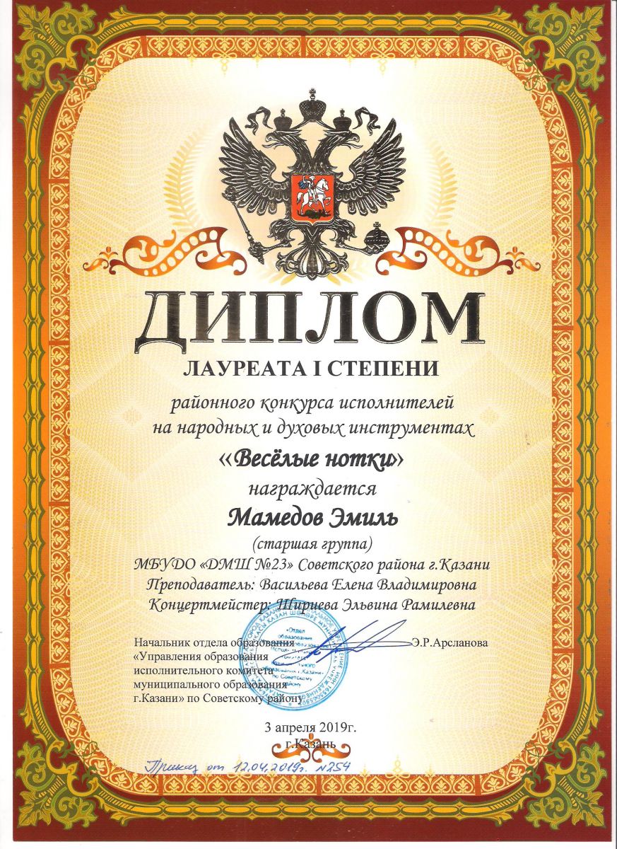 Городской конкурс татарской музыки «Кояшлы бүләк - 2019» - Диплом лауреата I степени - Тхай Арина