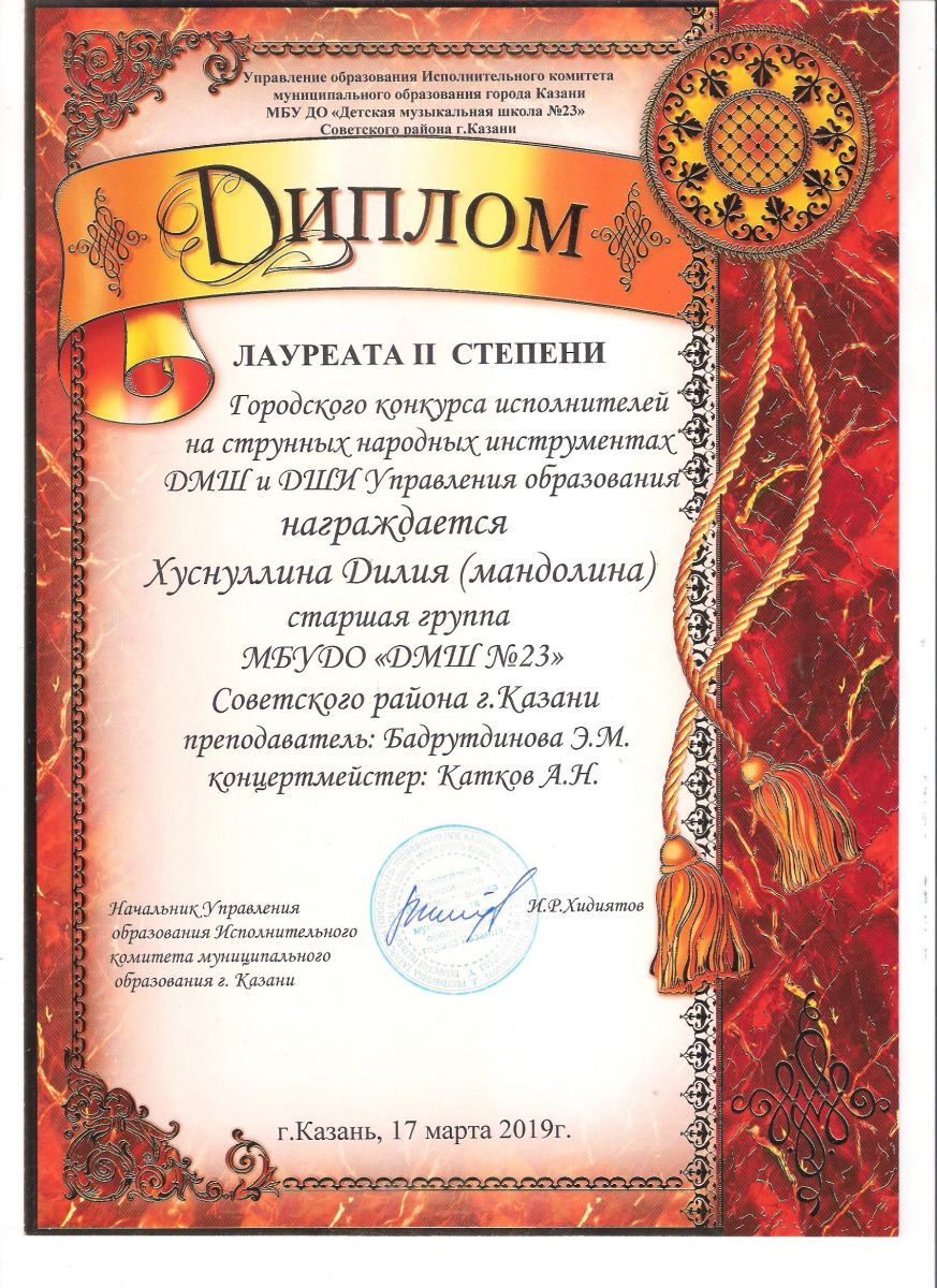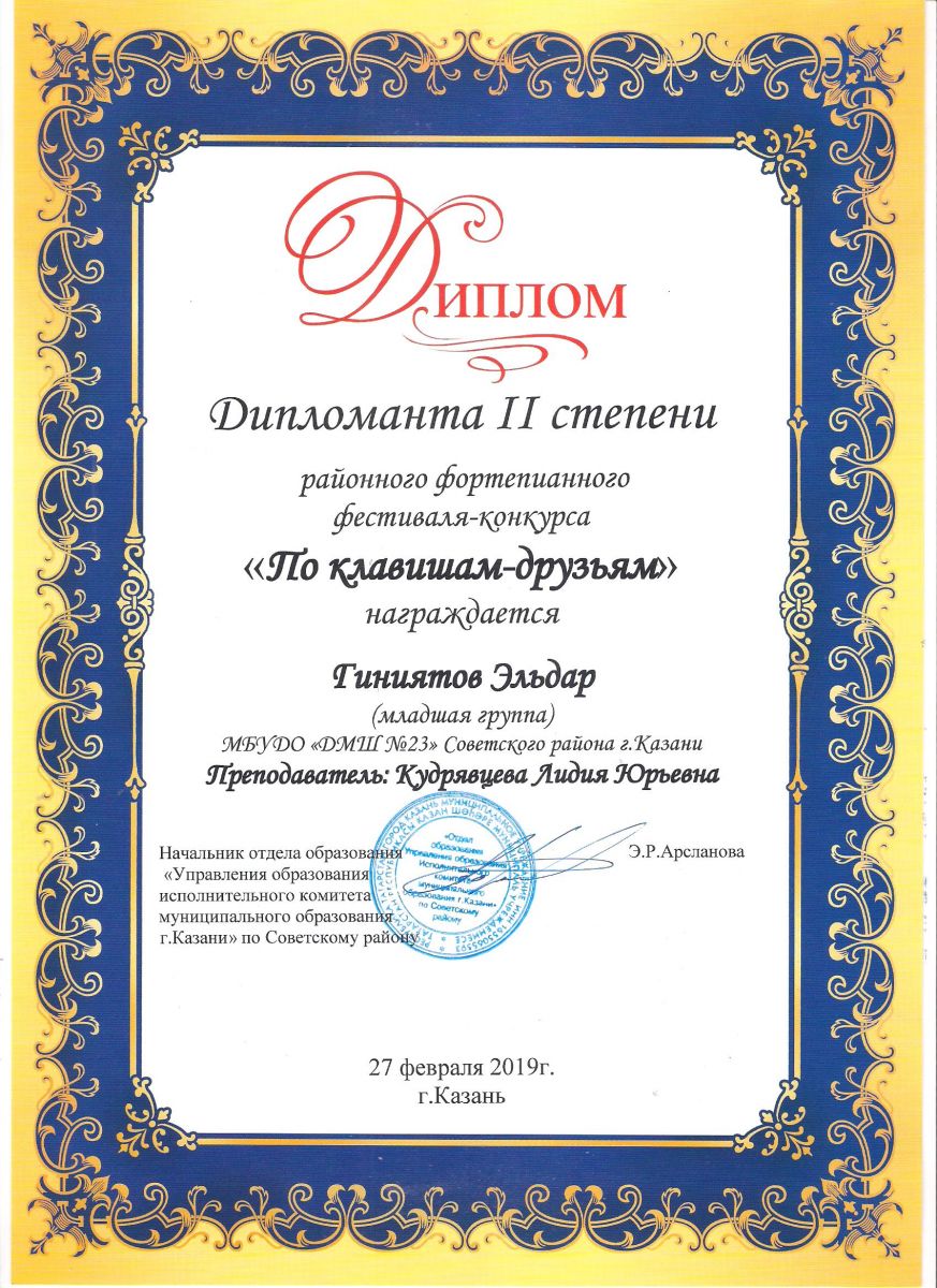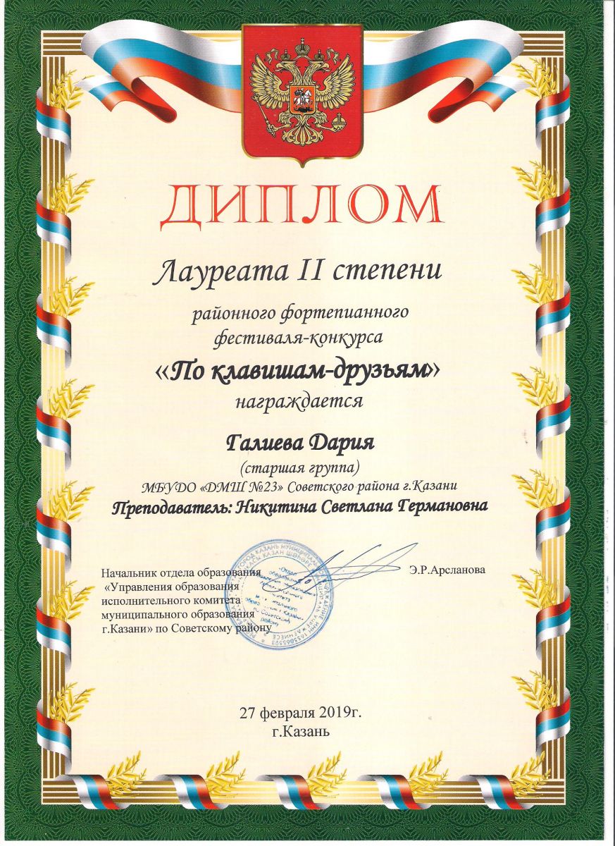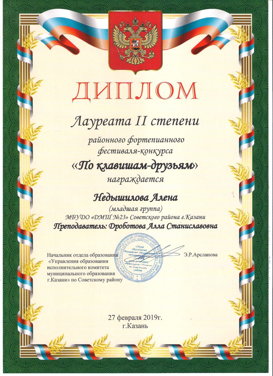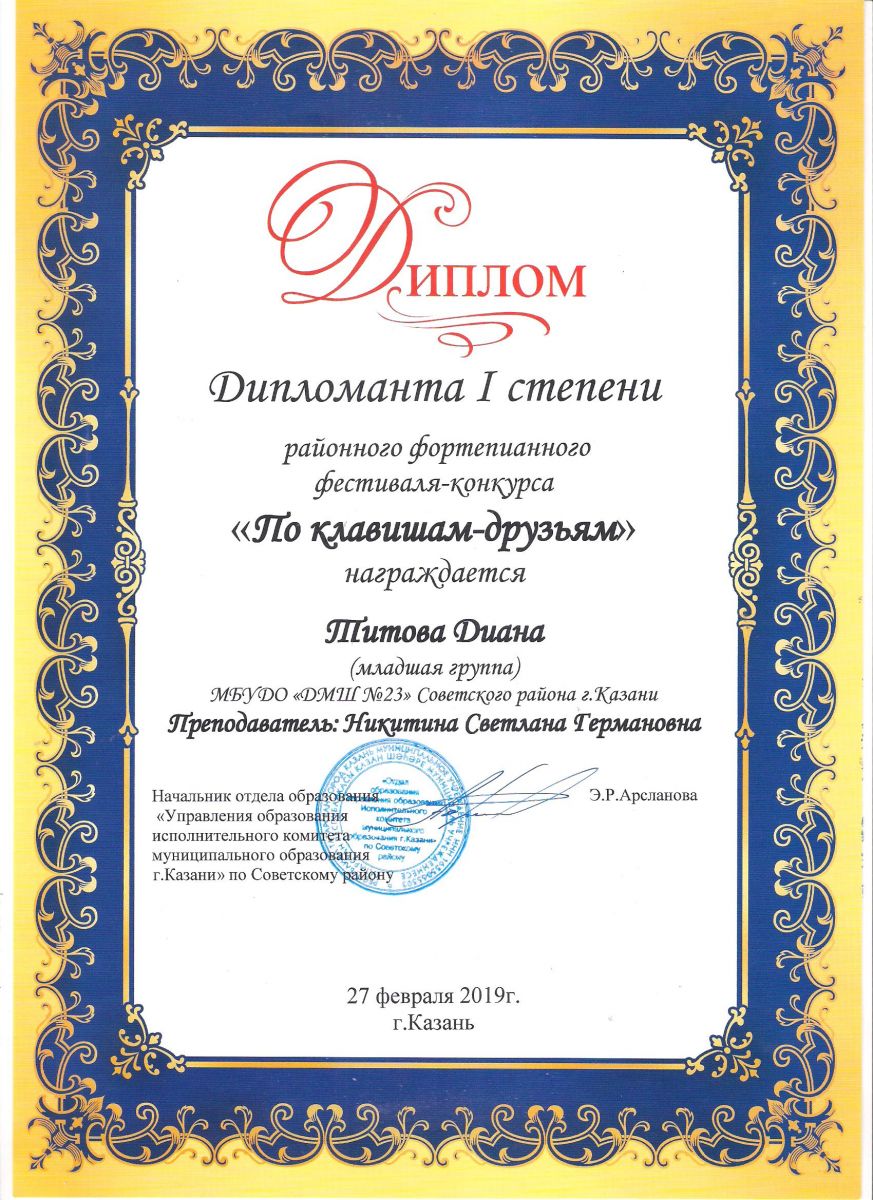 Городской конкурс пианистов "Piano d'arte" - Диплом дипломанта I степени - Хамидуллина Дина