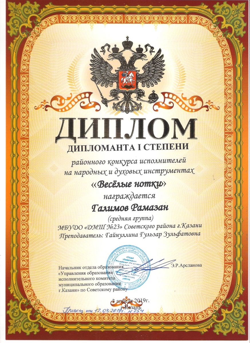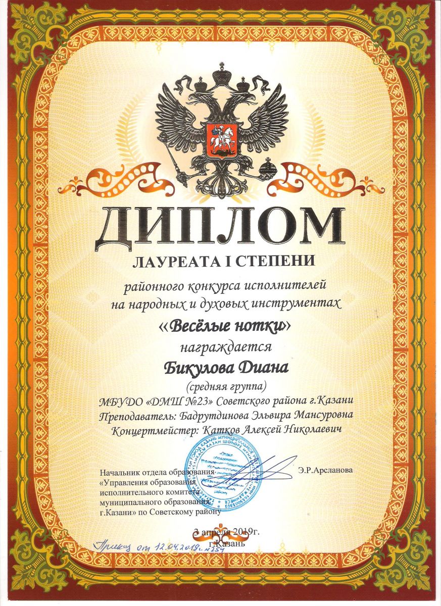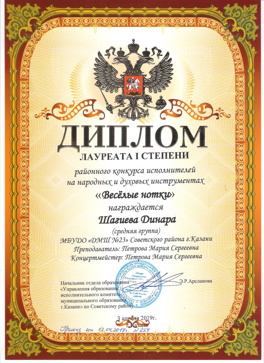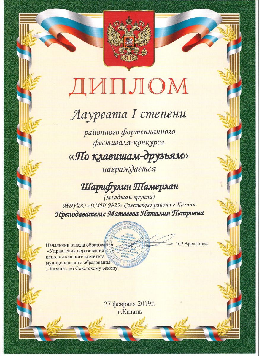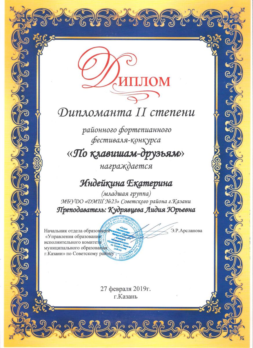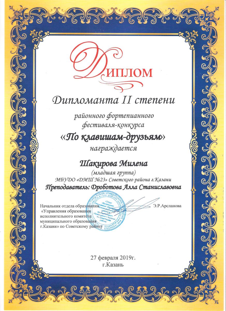 Городской конкурс пианистов "Piano d'arte" - Диплом дипломанта I степени - Хамидуллина Дина