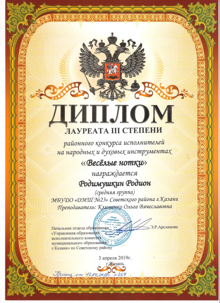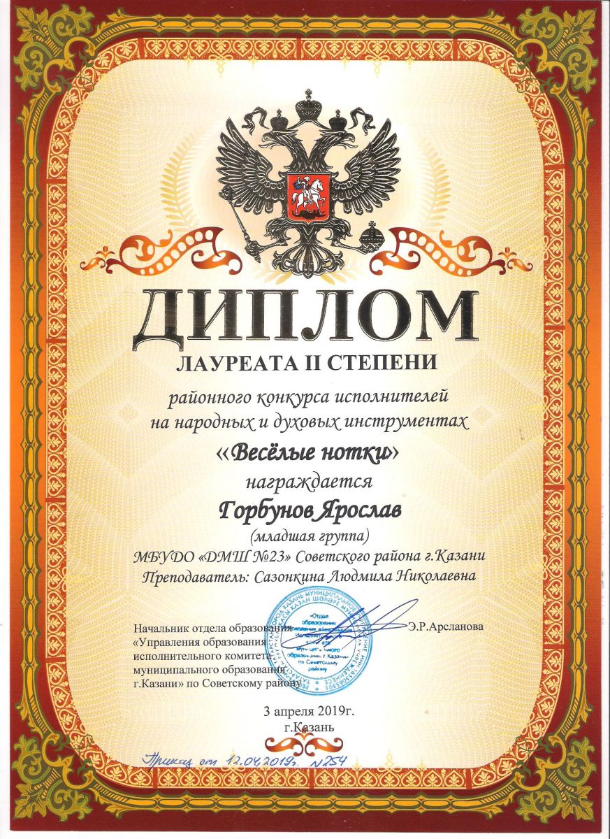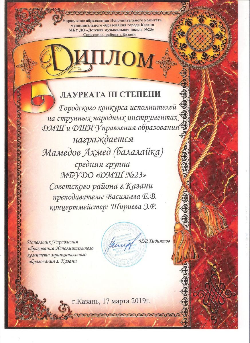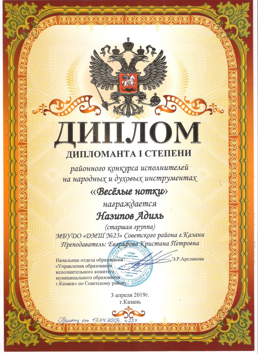 Городской конкурс исполнителей на струнных народных инструментах - Диплом дипломанта - Павлов Кирилл