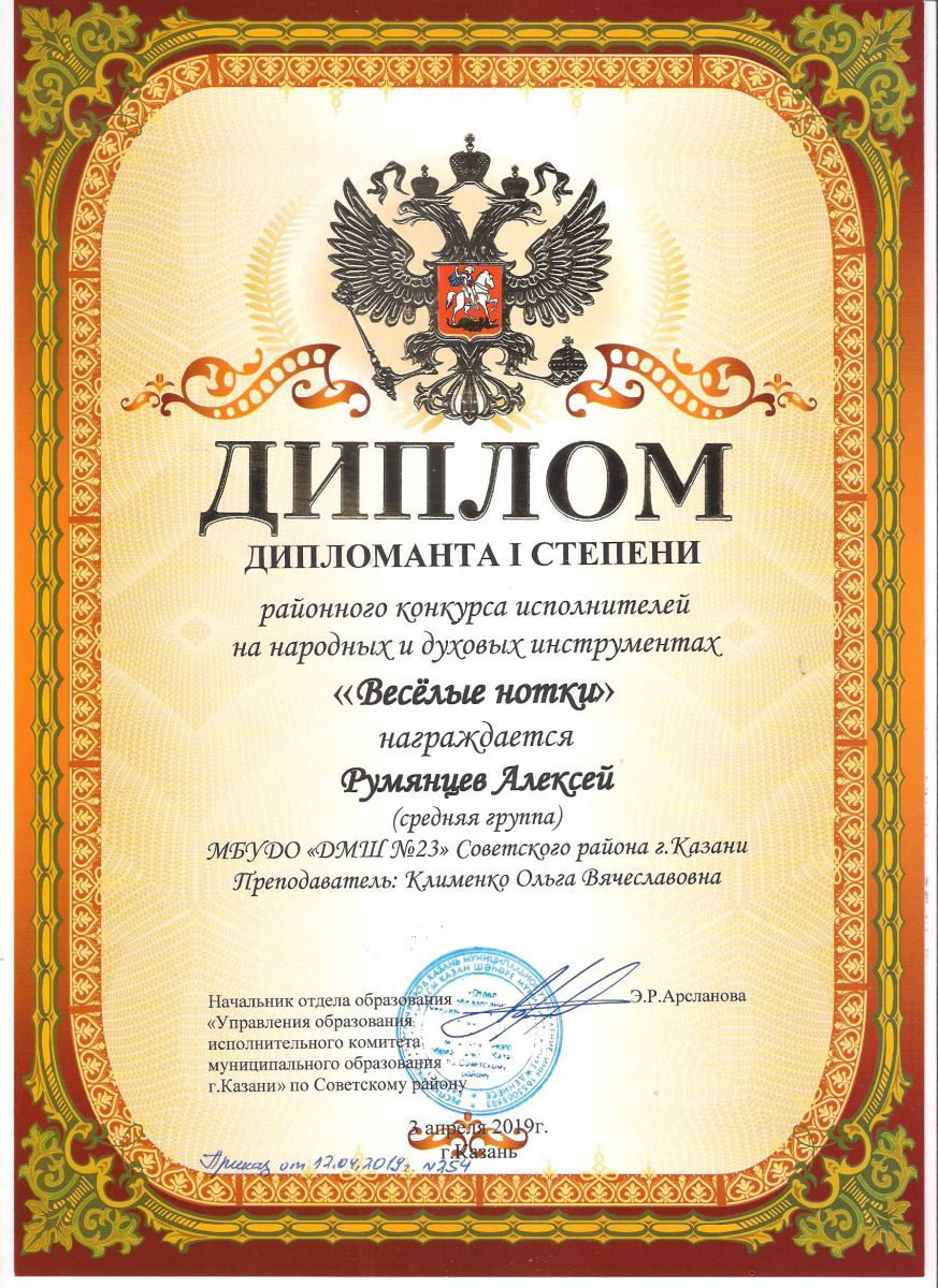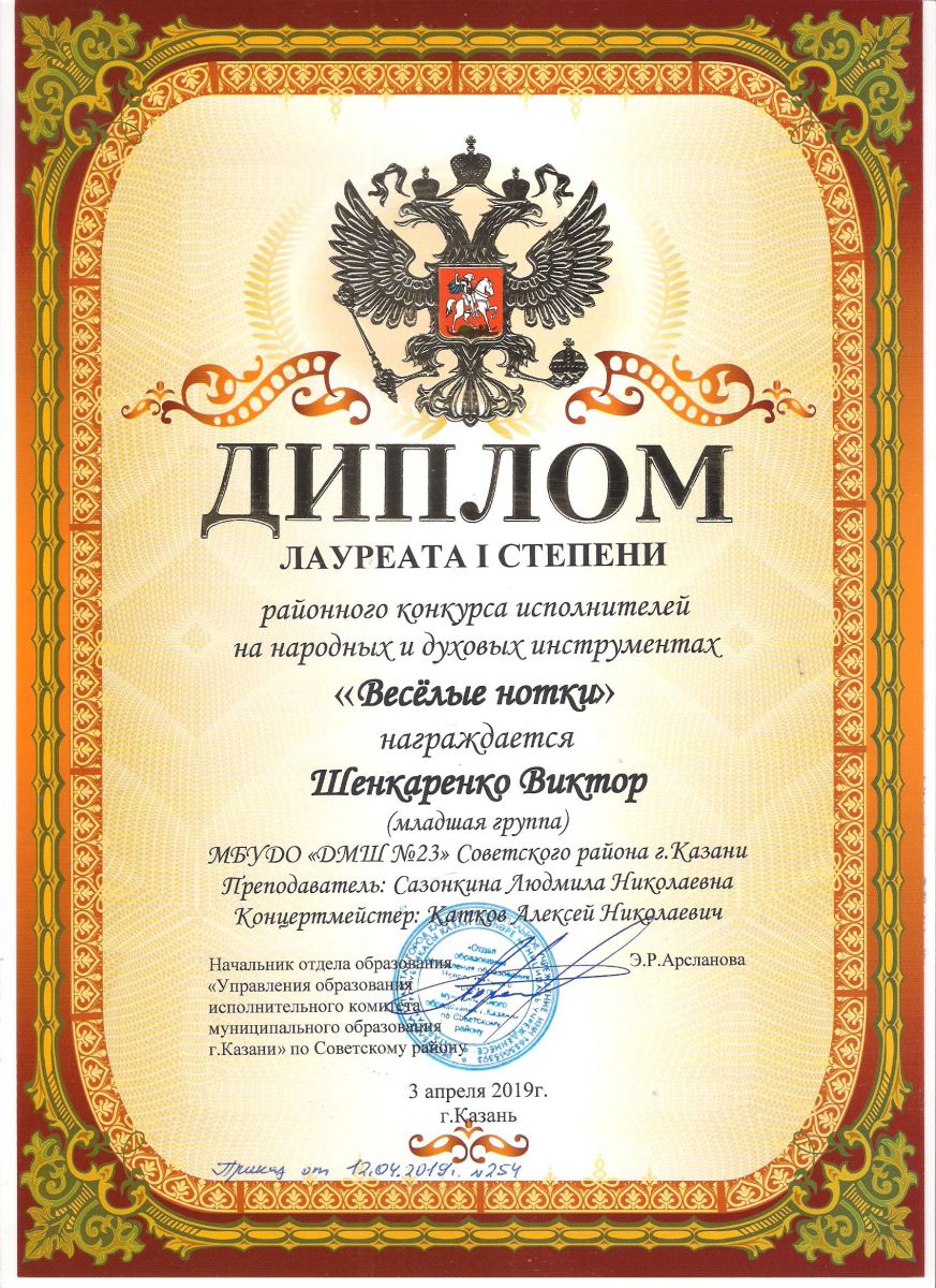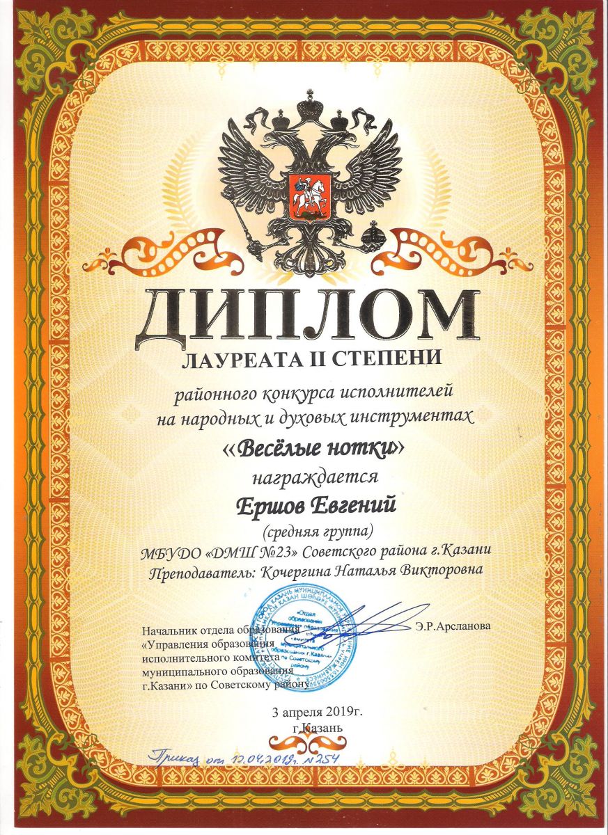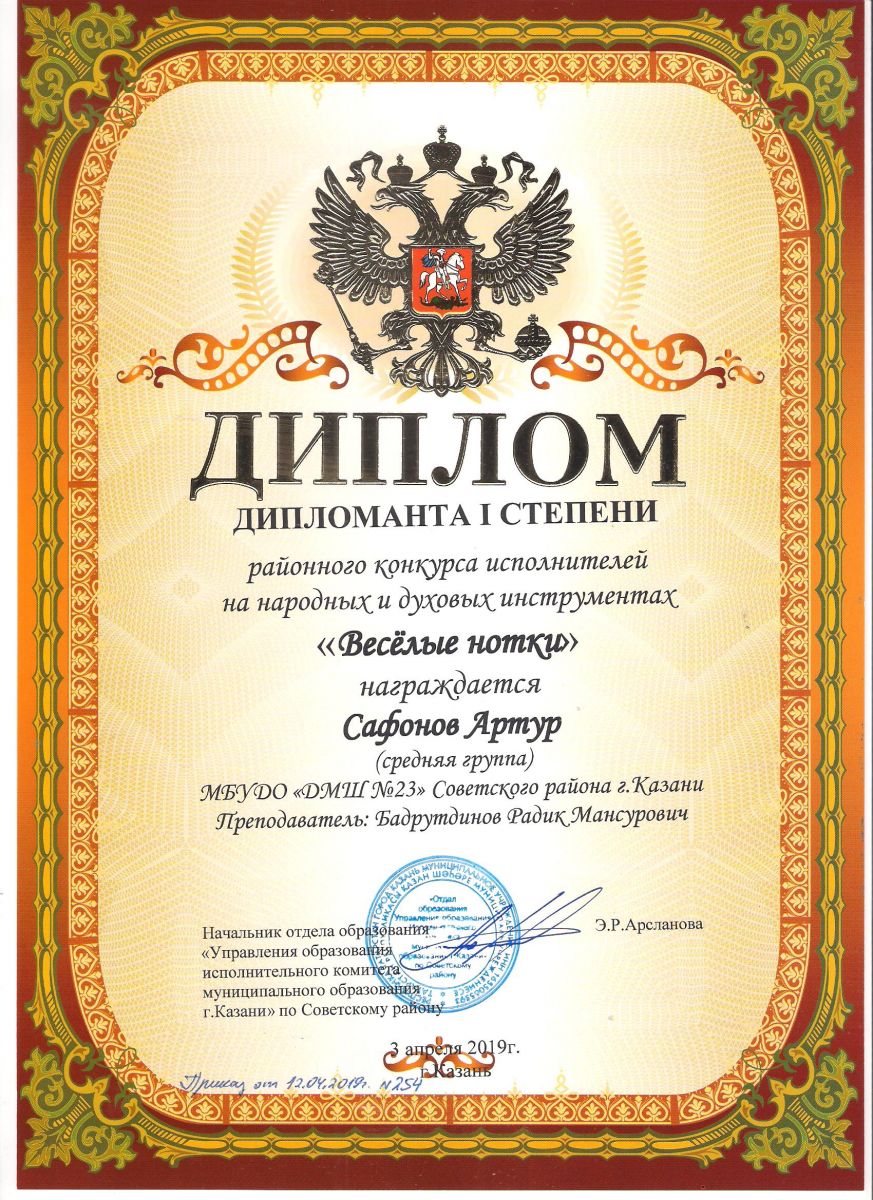 Городской конкурс исполнителей на струнных народных инструментах - Диплом дипломанта - Павлов Кирилл