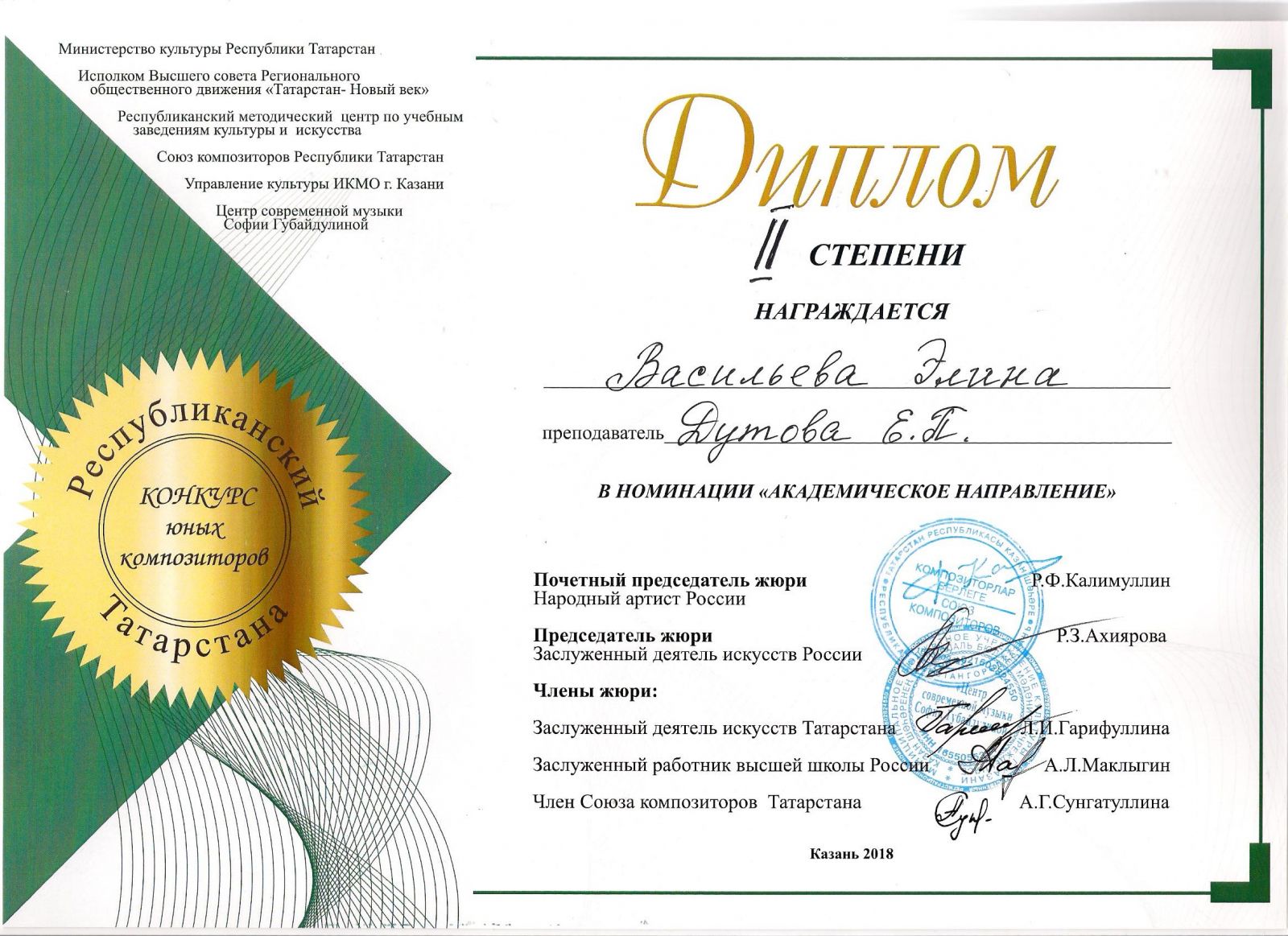 Республиканский конкурс юных композиторов Татарстана - Диплом 2 степени - Васильева Элина (преподаватель: Дутова Е.П.)