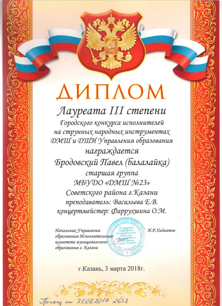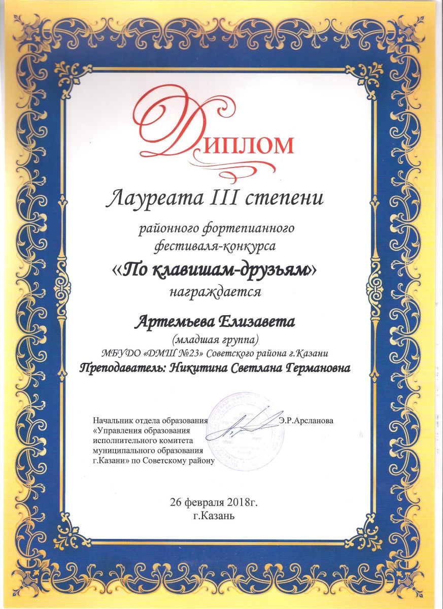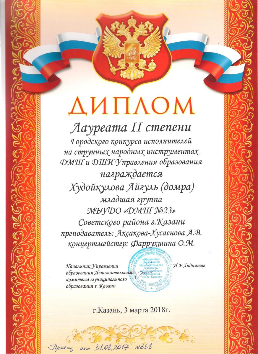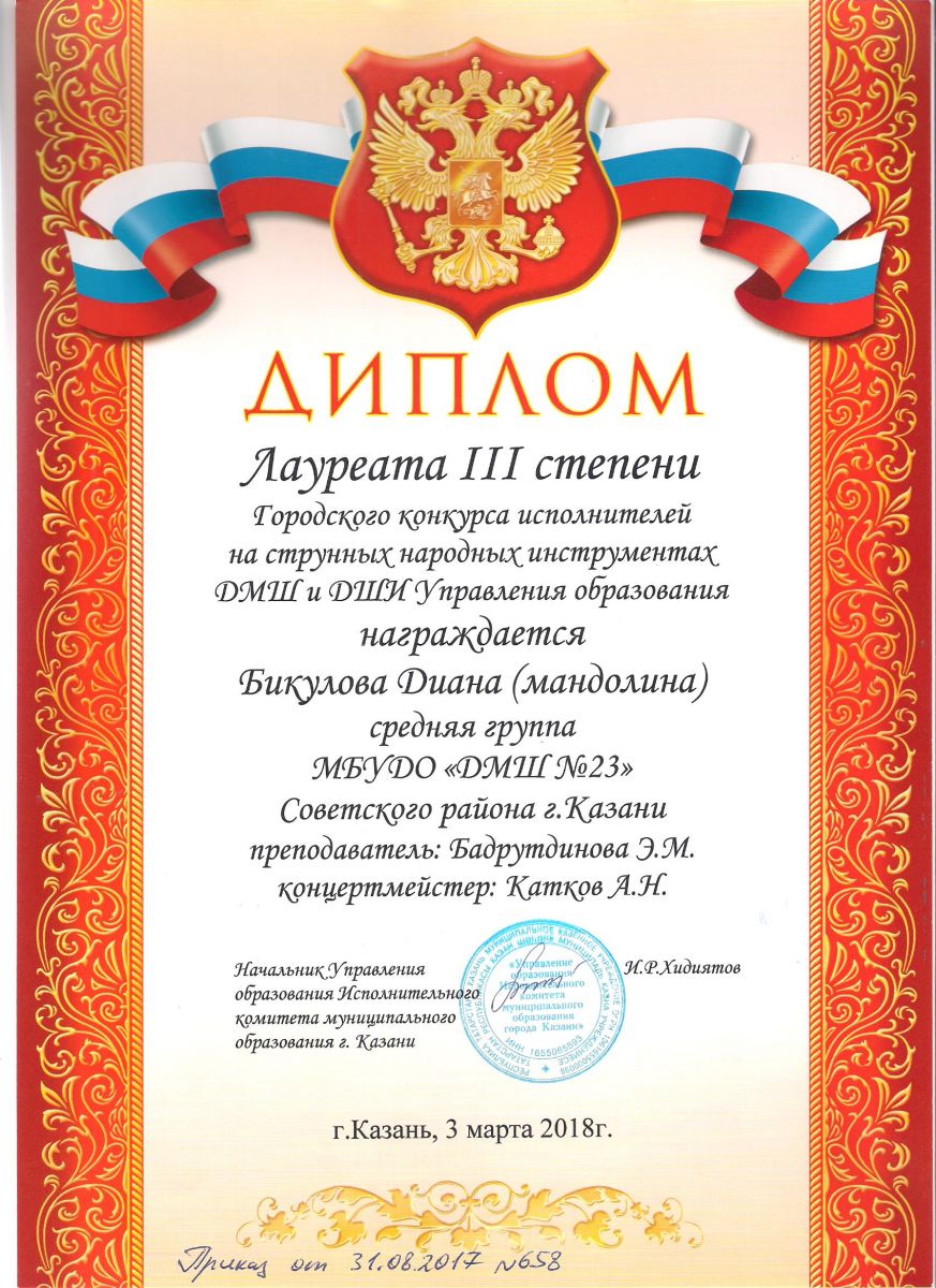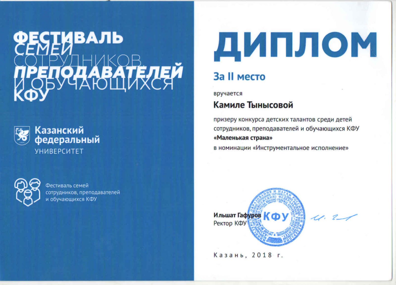 Городской конкурс татарской музыки "Кояшлы булэк" - Диплом лауреата 3 степени - Тхай Арина (преподаватель: Матвеева Н.П.)