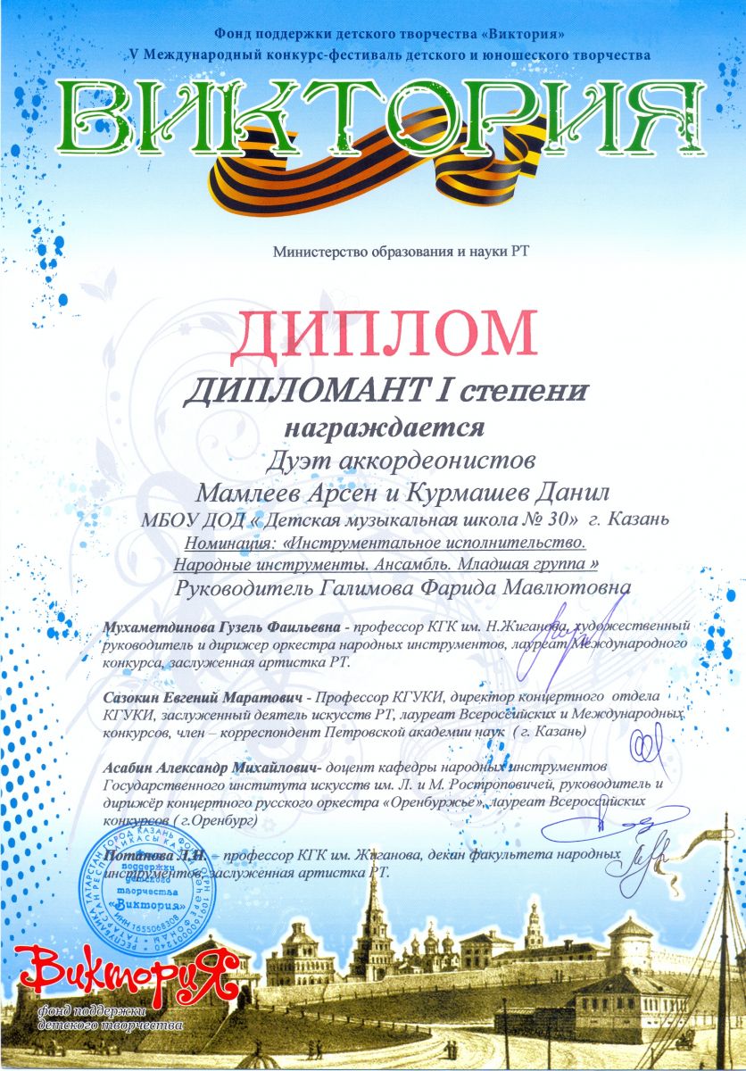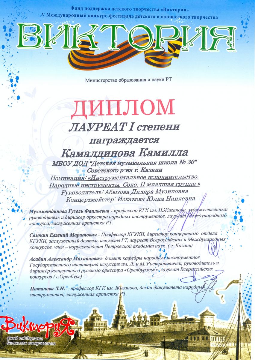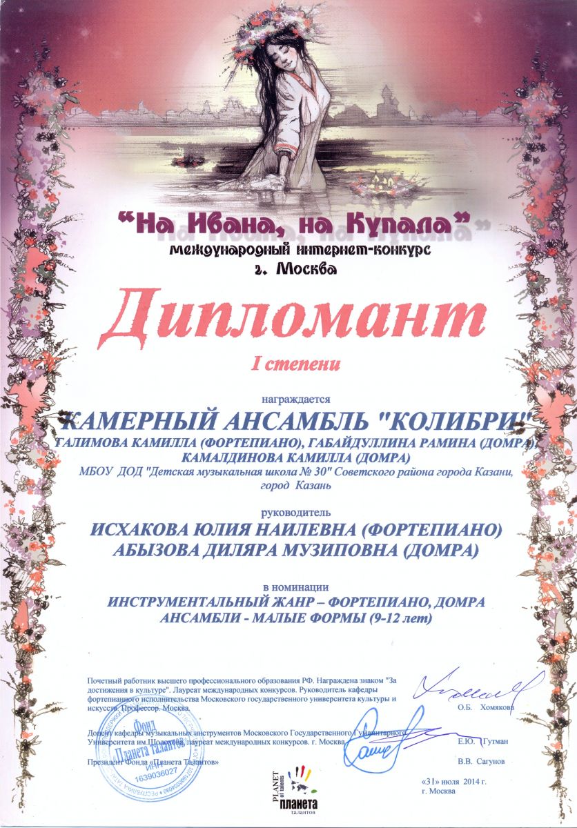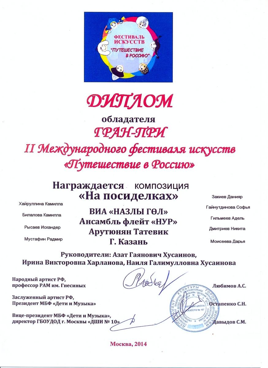 Международный семинар любителей музыкального музицирования – Назметдинова Диана – сертификат