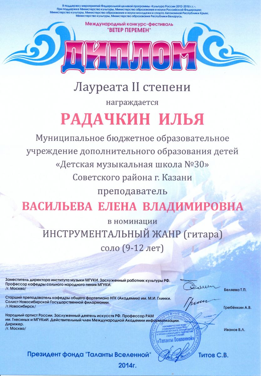 Международный конкурс-фестиваль «Ветер перемен» - Радачкин Илья – II место