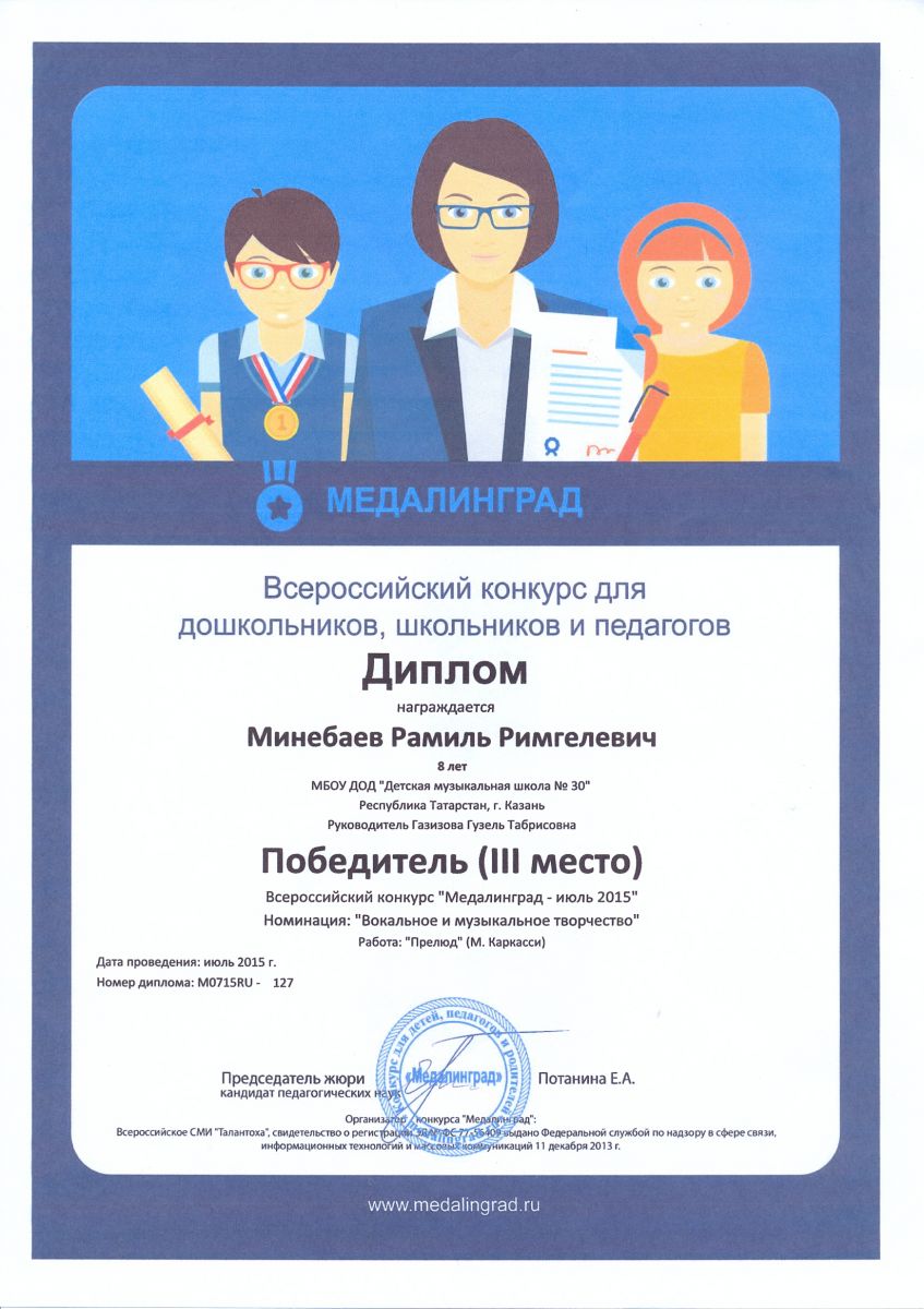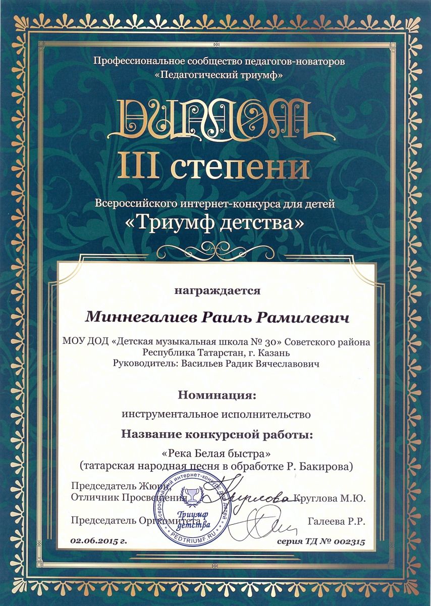 Всероссийский интернет-конкурс для детей «Триумф детства» - Мннегалиев Раиль - диплом III степени