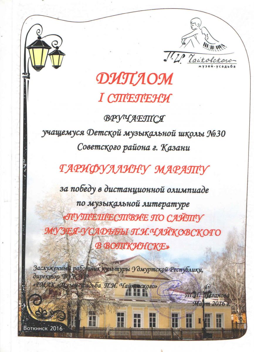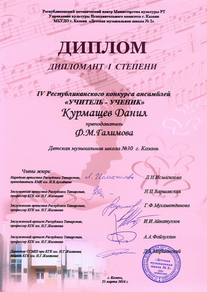 IV Республиканский конкурс ансамблей "Учитель-ученик" - Курмашев Данил - диплом I степени