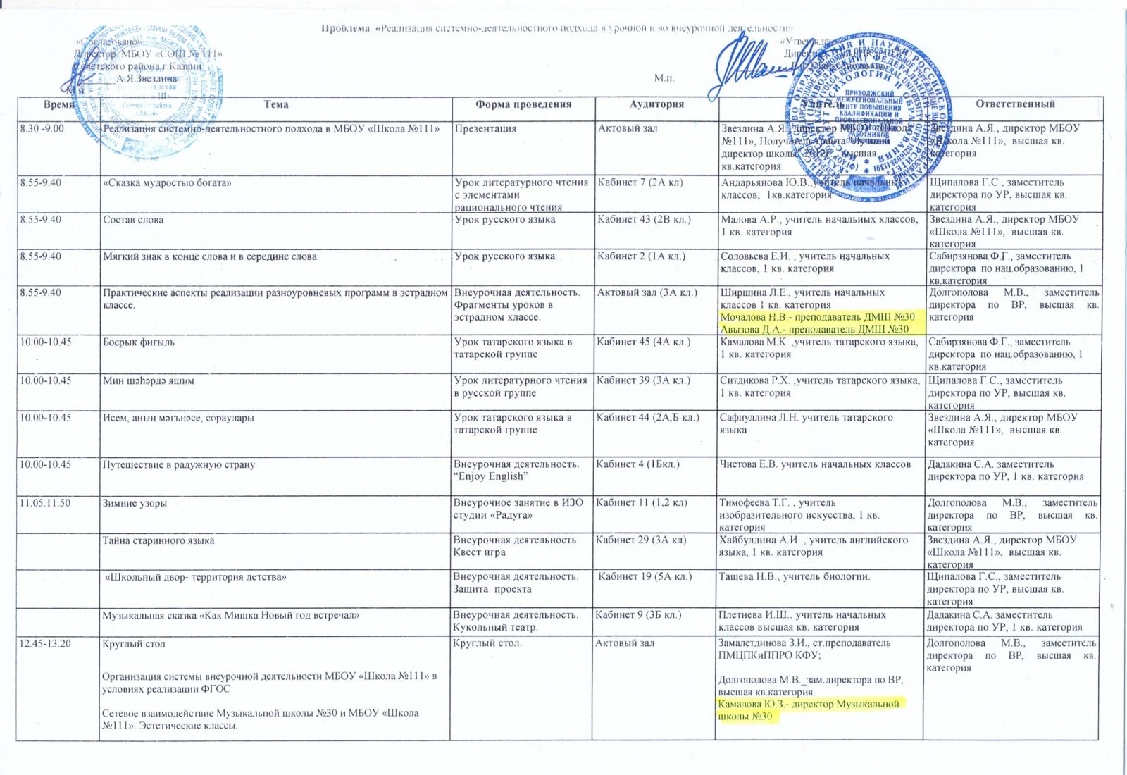 Республиканская стажировка "Реализация системно-деятельностного подхода в урочной и во внеурочной деятельности" в рамках курсов повышения квалификации ПМЦПКиППРО КФУ - доклад "Сетевое взаимодействие музыкальной школы № 30 и МБОУ СОШ № 111" - Камалова Ю.З.