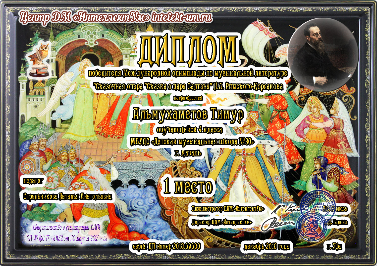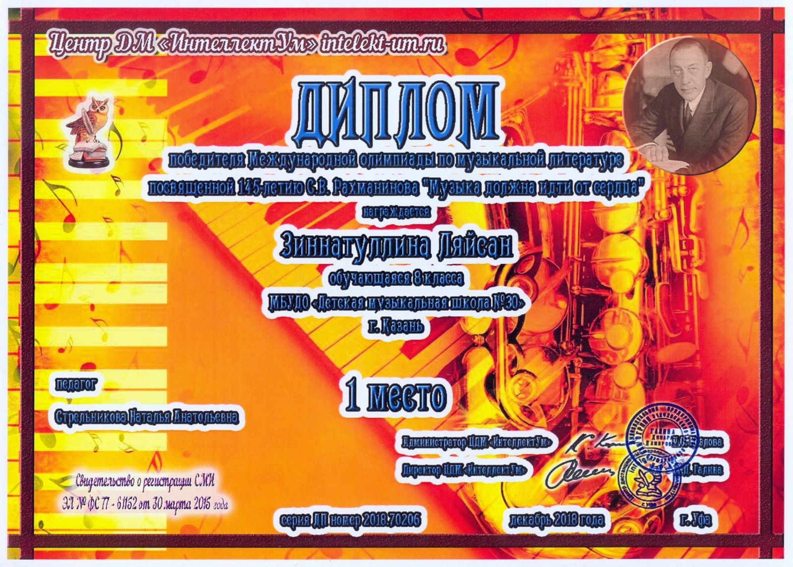 Международный фестиваль-конкурс "VIVAT, KAZAN!" в рамках творческого проекта "Адмиралтейская звезда" - Шайхиева Аделия - диплом II степени