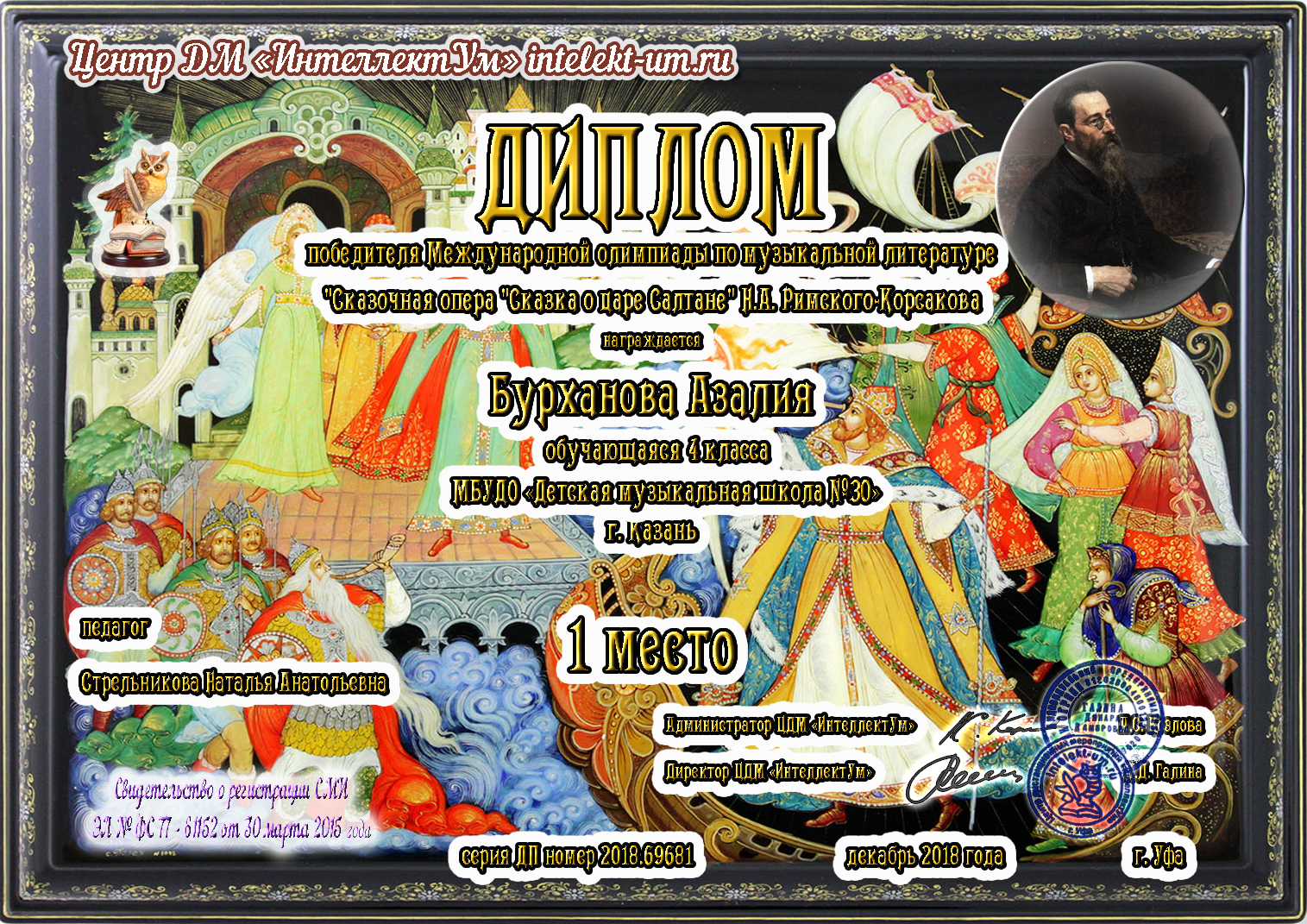 Международный фестиваль-конкурс "VIVAT, KAZAN!" в рамках творческого проекта "Адмиралтейская звезда" - Хабибуллина Карина - диплом I степени
