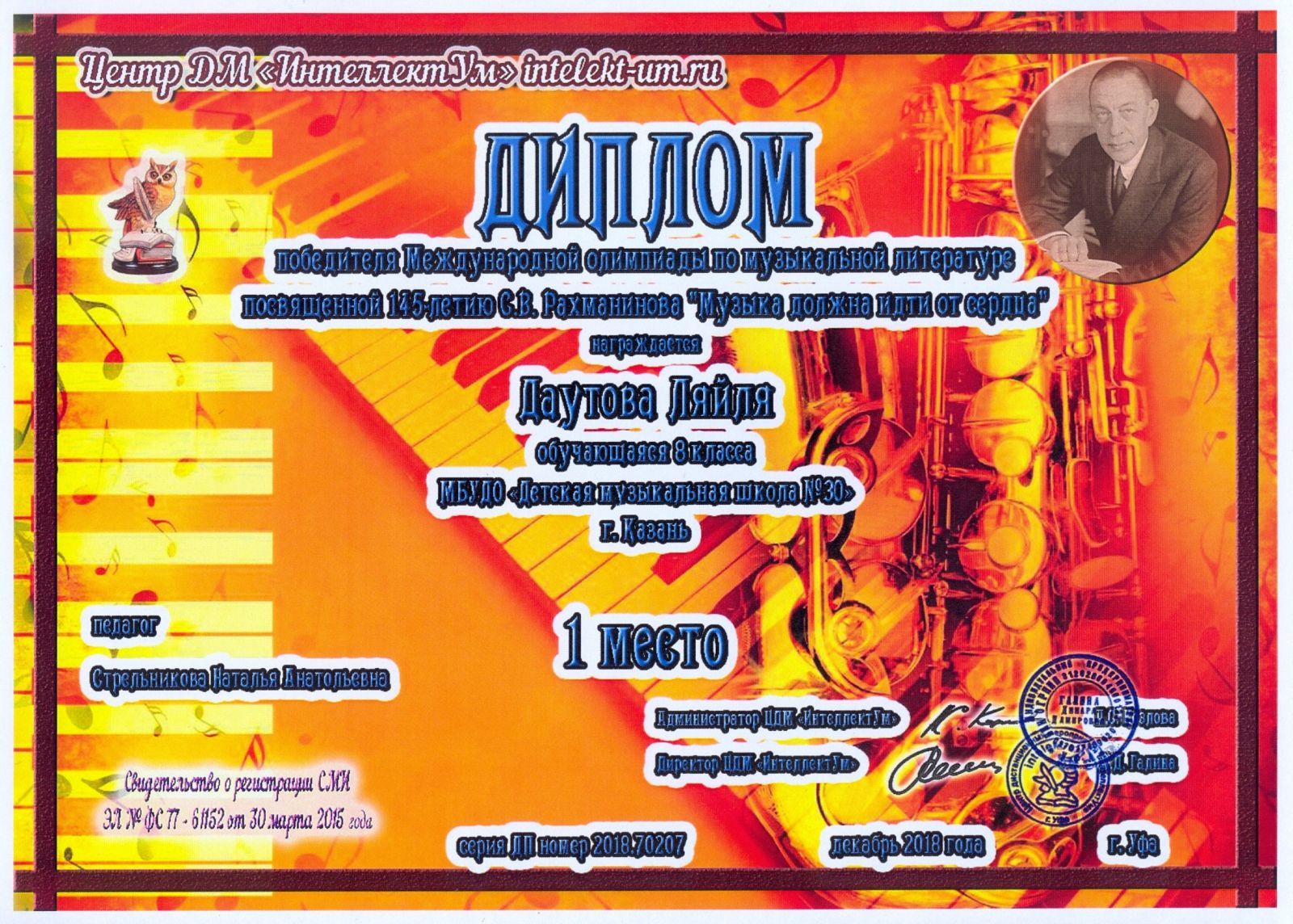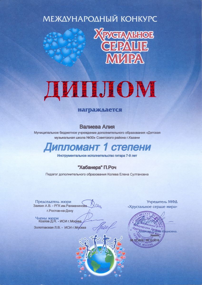 Международный конкурс "Хрустальное сердце мира" - Валиева Алия - диплом I степени