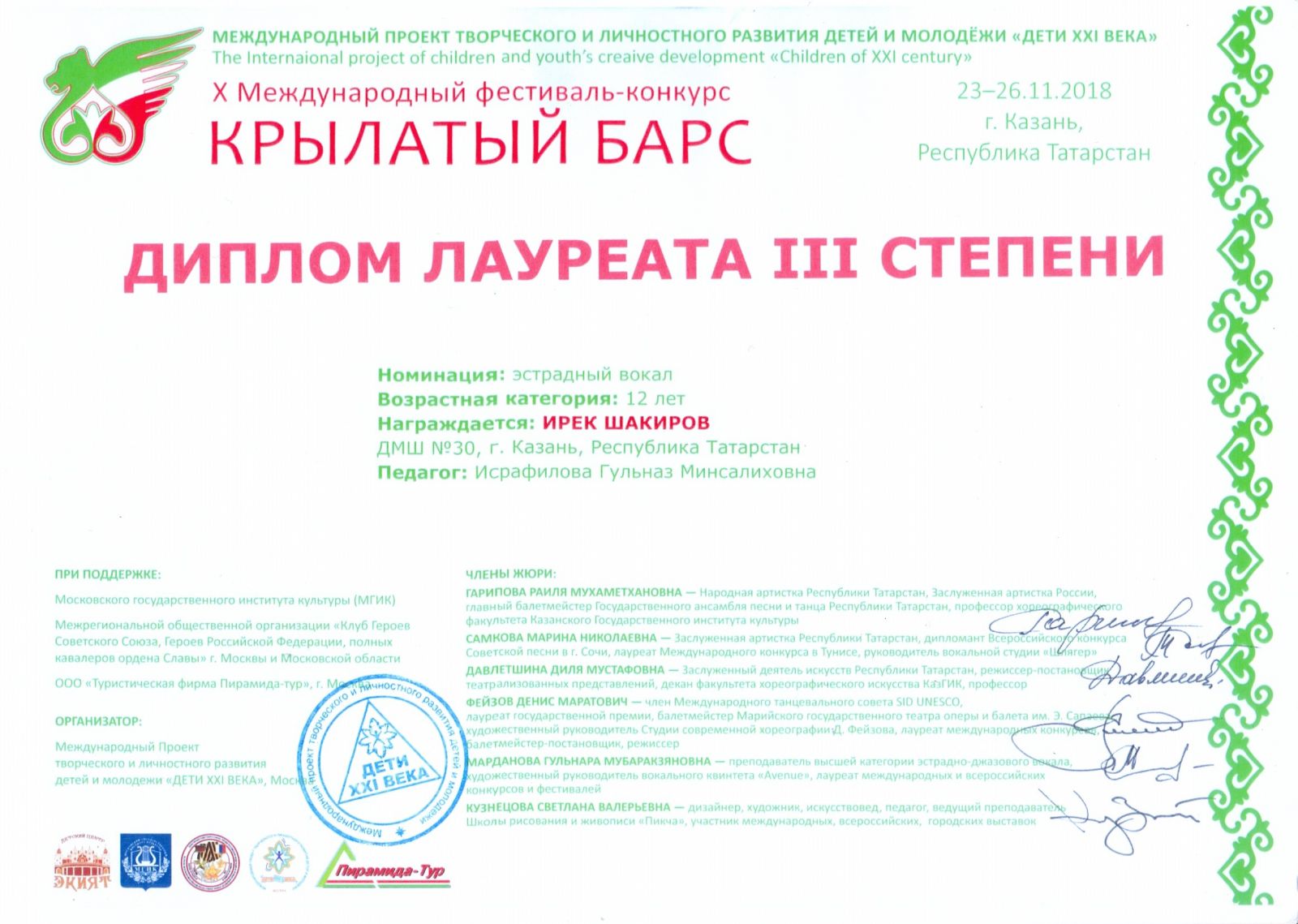 X Международный фестиваль-конкурс "Крылатый барс" - Шакиров Ирек - III место