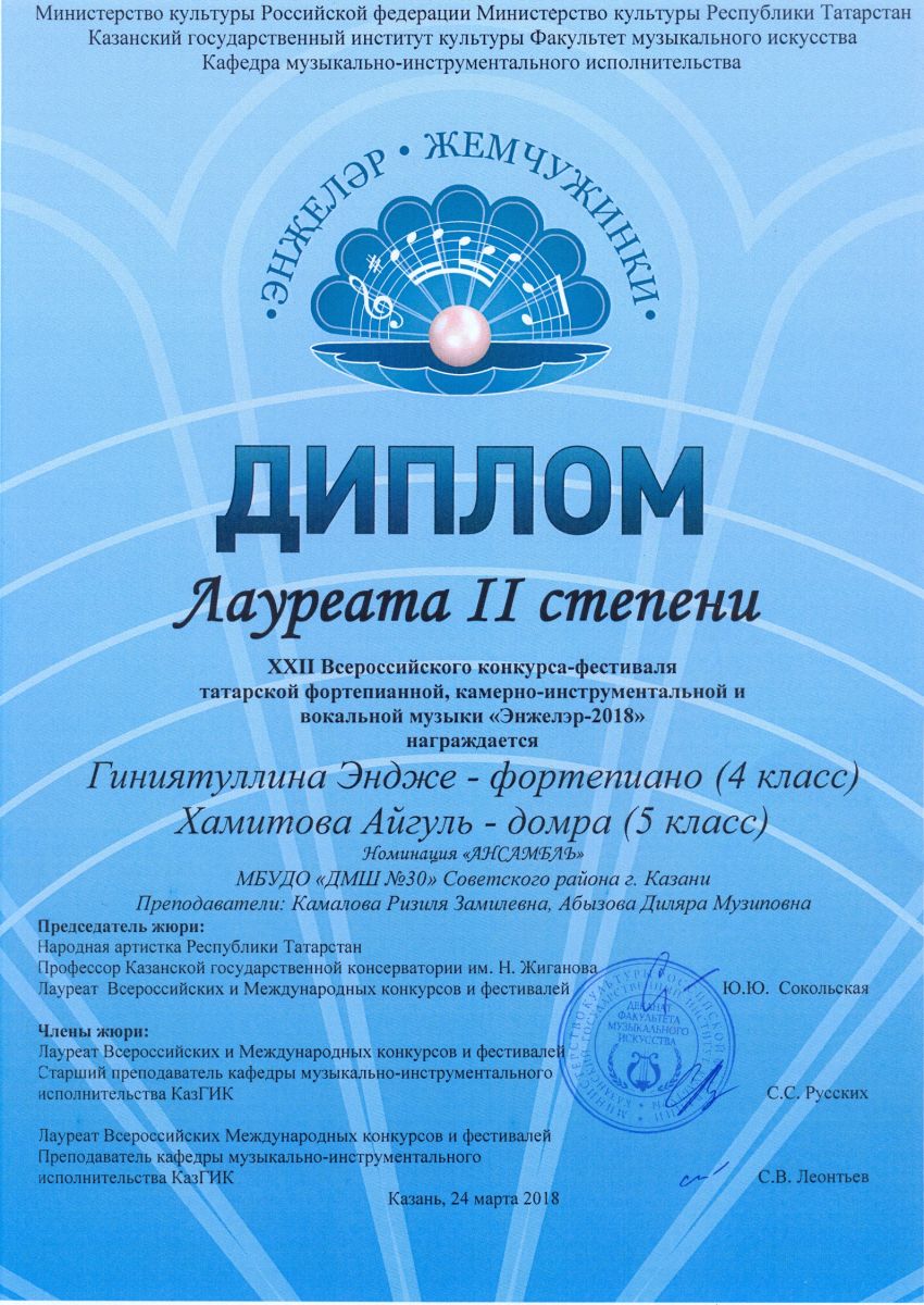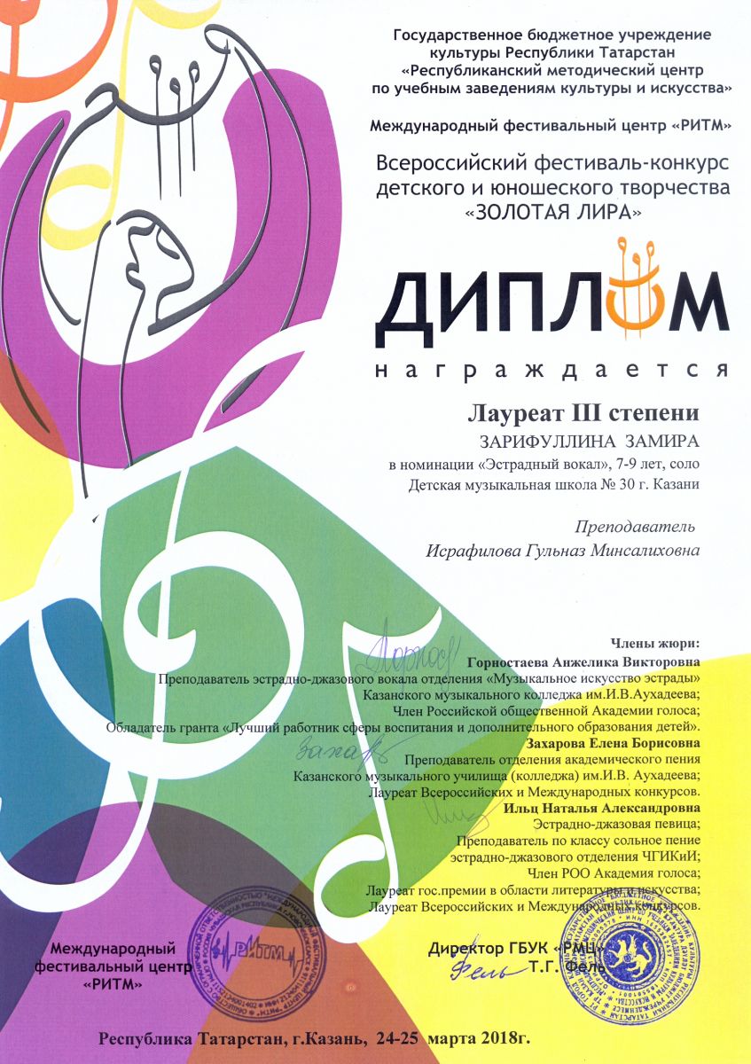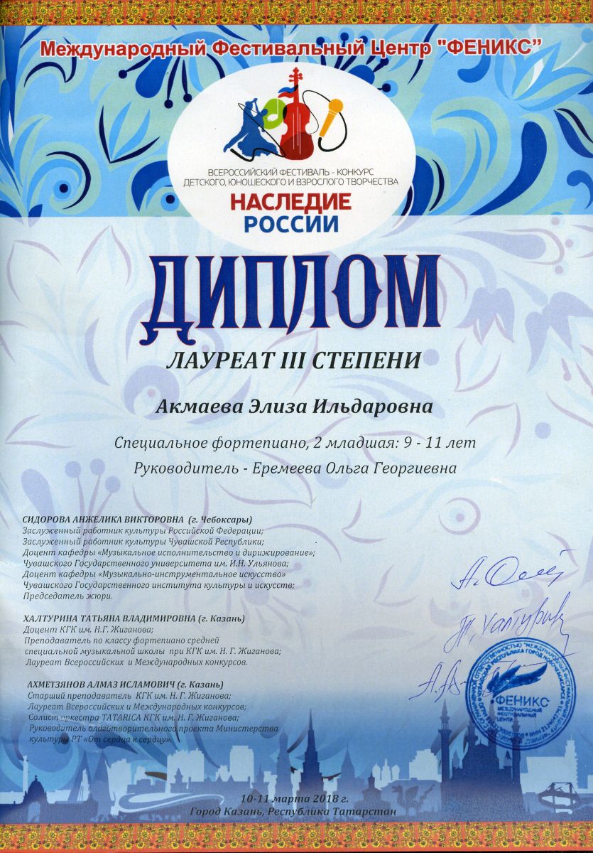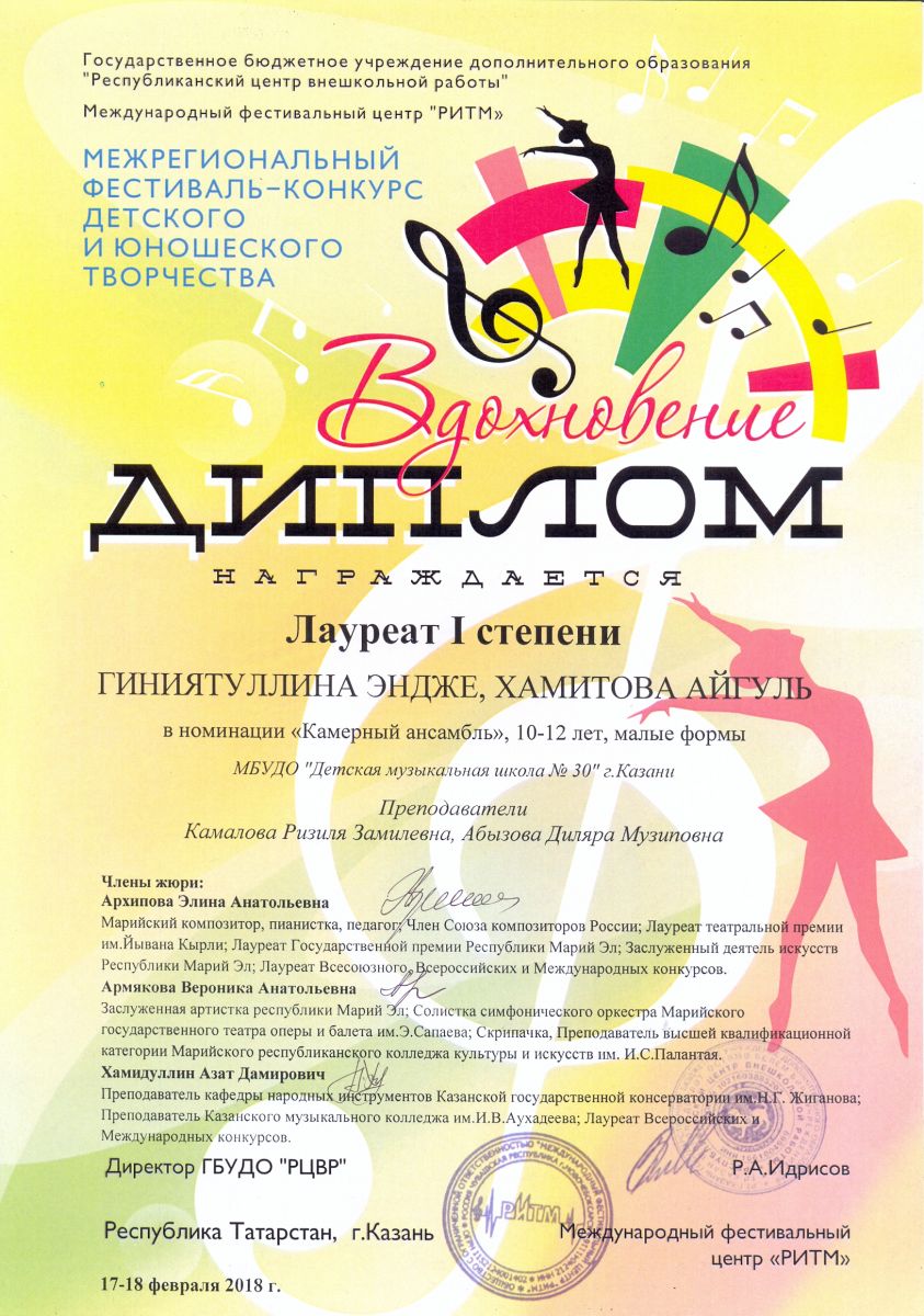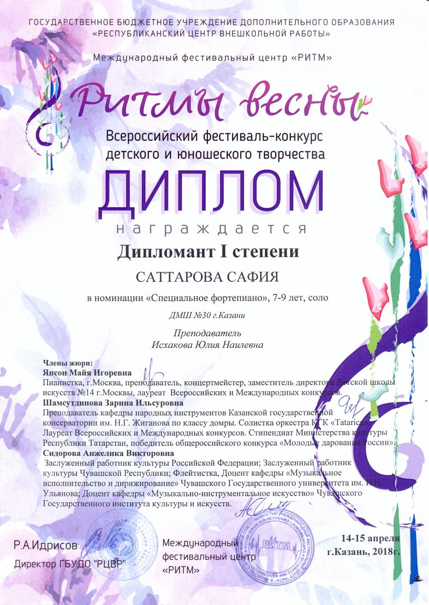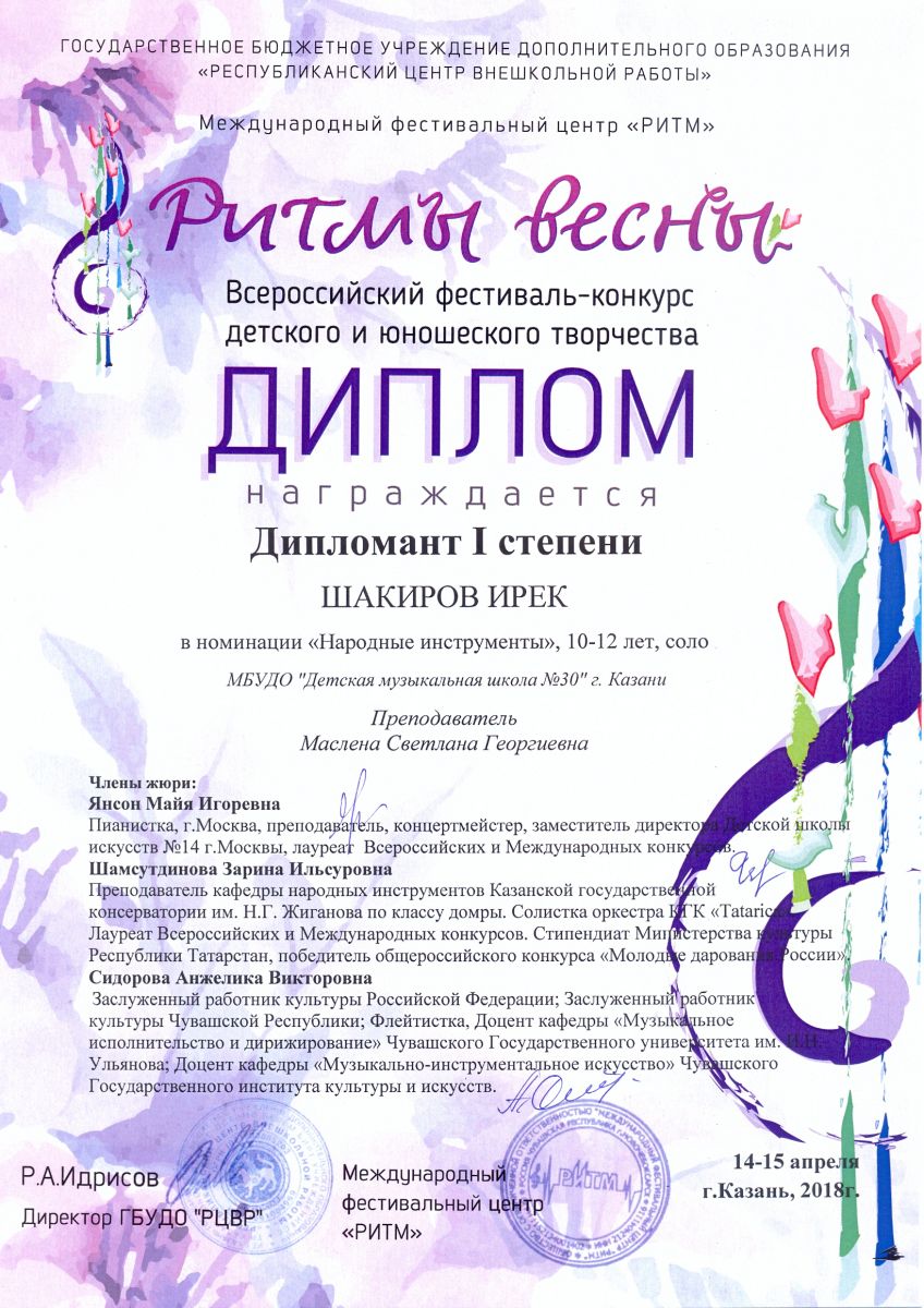 Всероссийский фестиваль-конкурс классического музыкального искусства "Симфония талантов" - Исмагилов Булат - диплом I степени