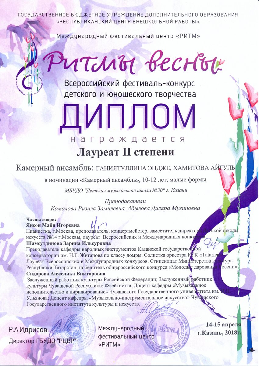 Всероссийский фестиваль-конкурс "Твоё время" - Хамматовы Айгуль и Диля - II место