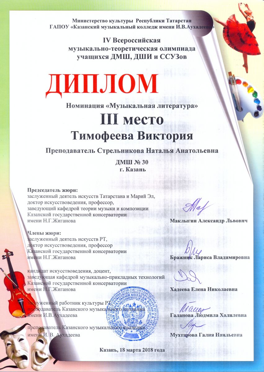Всероссийский фестиваль-конкурс "Твоё время" - Андреева Ульяна - диплом