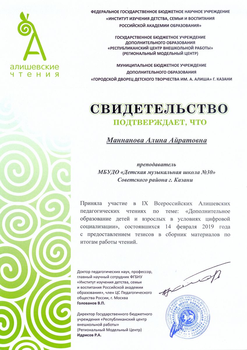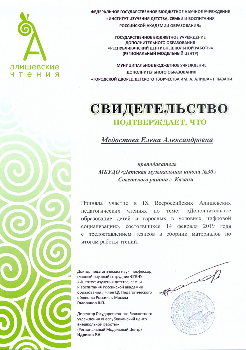 Всероссийский форум "Домра-2019" (г.Москва) - Абызова Д.М. - сертификат участника