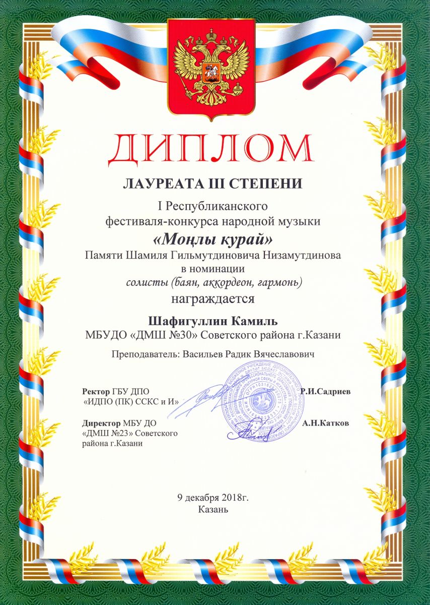 Открытый региональный конкурс детского творчества "Золотой петушок" - Гайфуллин Ринат - III место