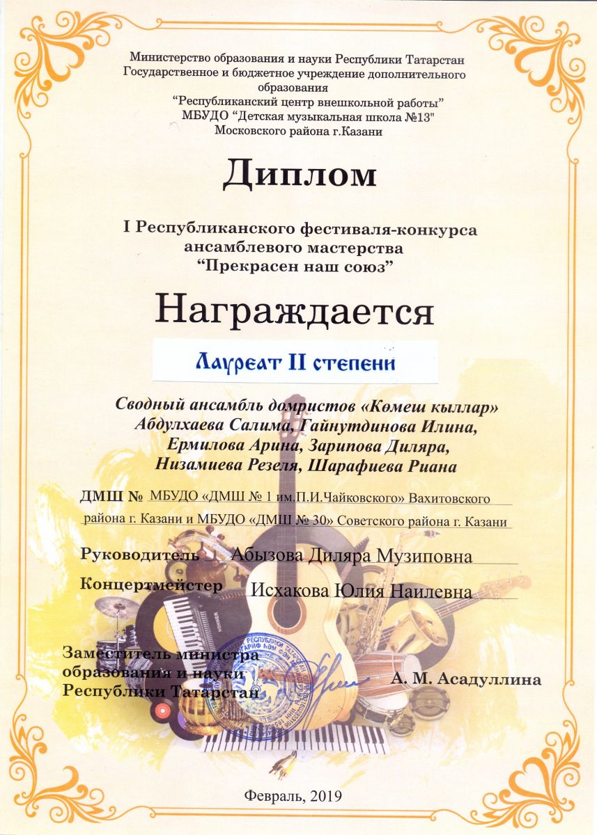 Муниципальное бюджетное учреждение дополнительного образования «Детская музыкальная школа №30» Советского района г.Казани