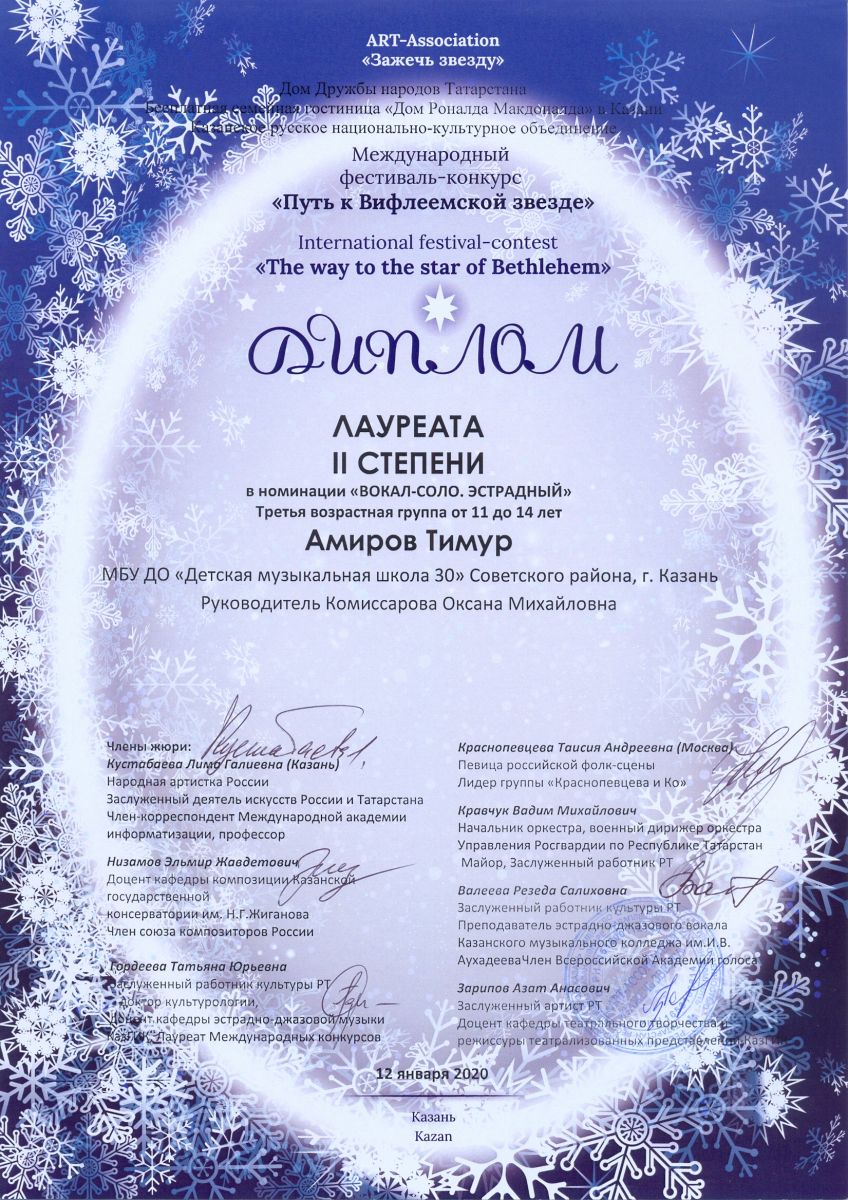 Международный фестиваль-конкурс "Путь к Вифлеемской звезде" - Амиров Тимур - II место