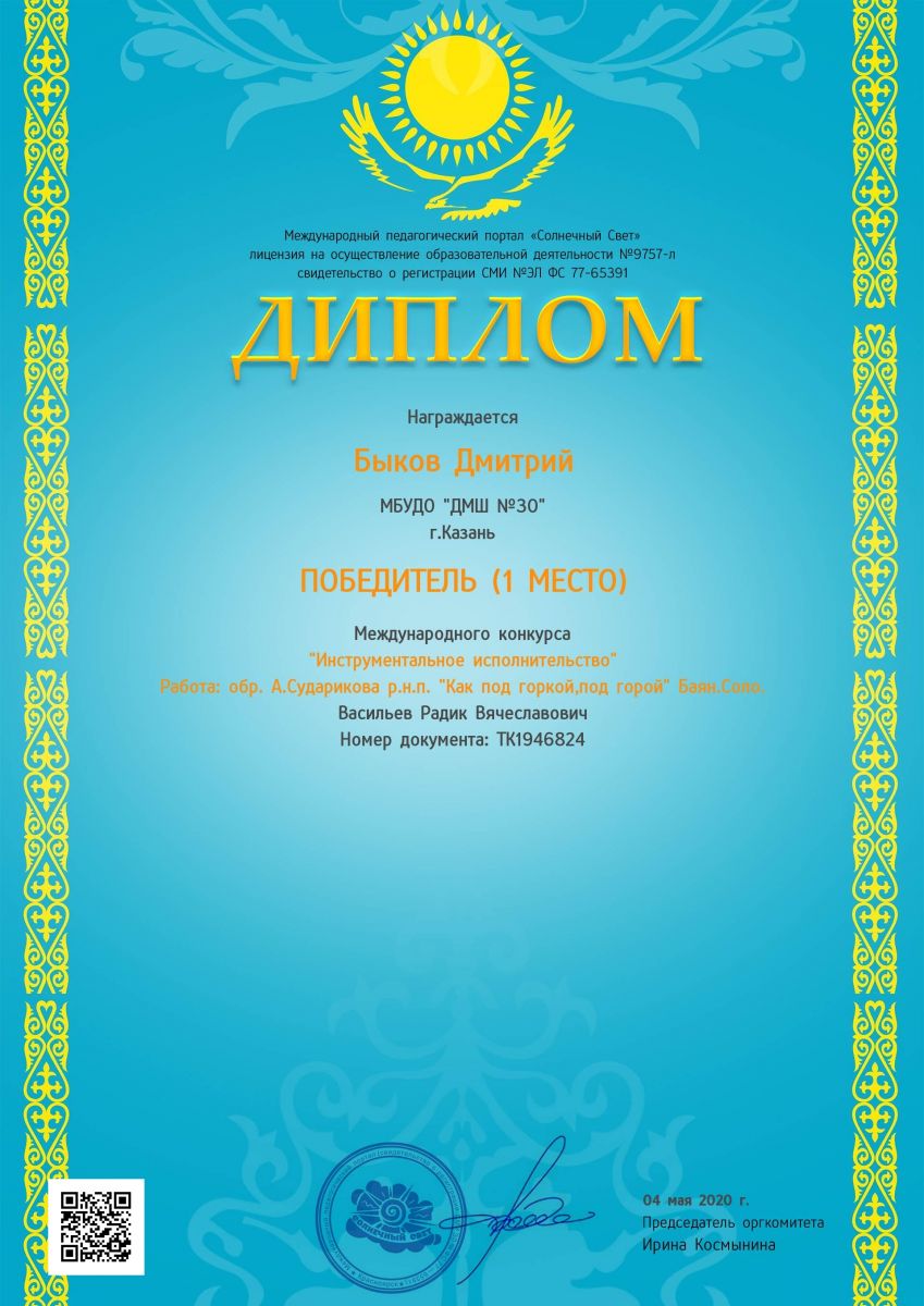 Международный конкурс "Солнечный свет" - Быков Дмитрий - I место