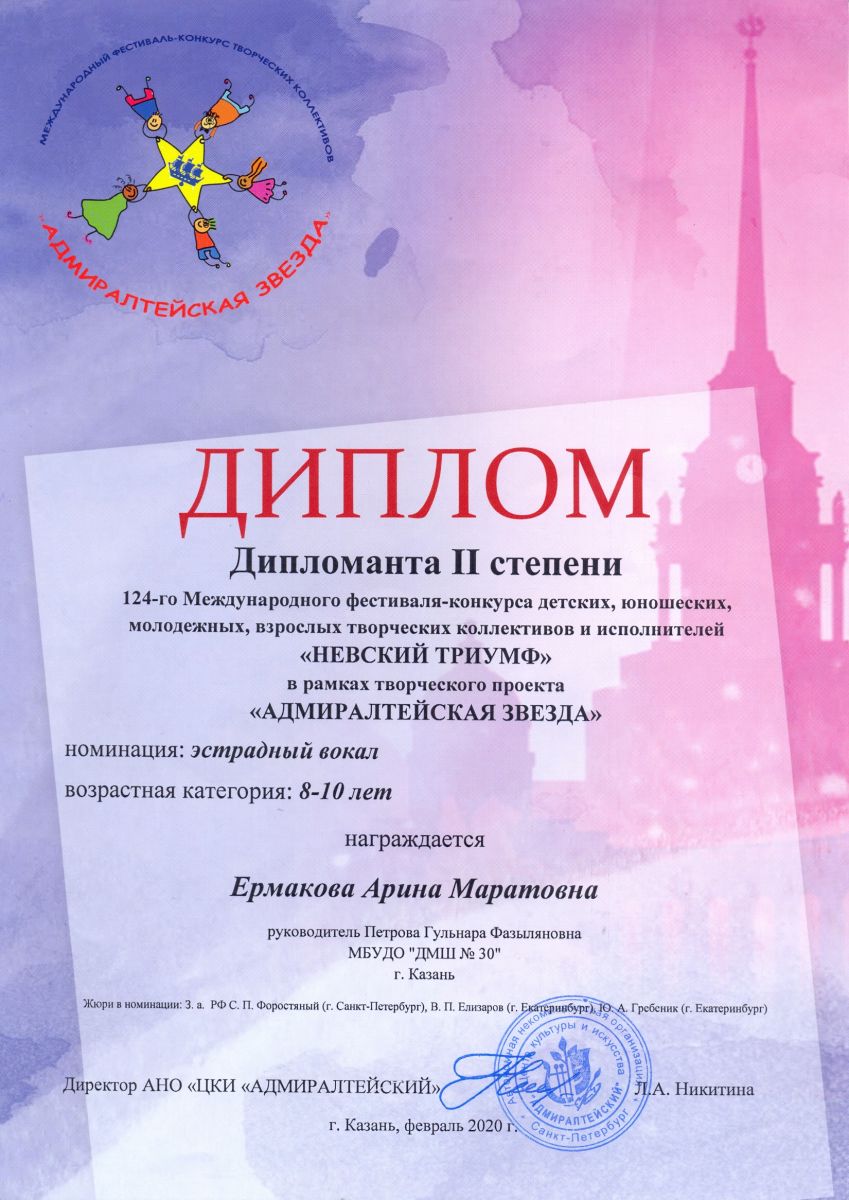 Международный конкурс искусств "Арт Перспектива" - Шакирова Зиля - II место