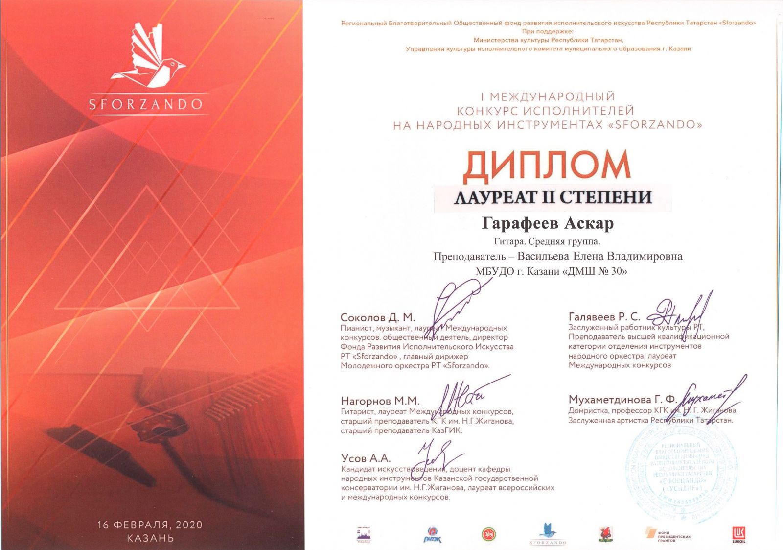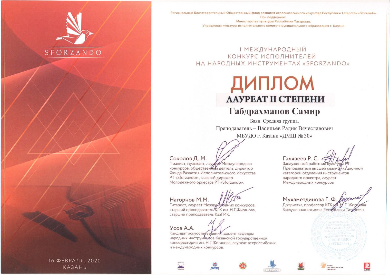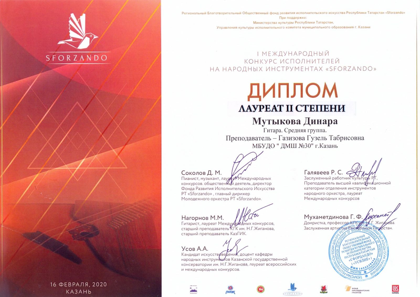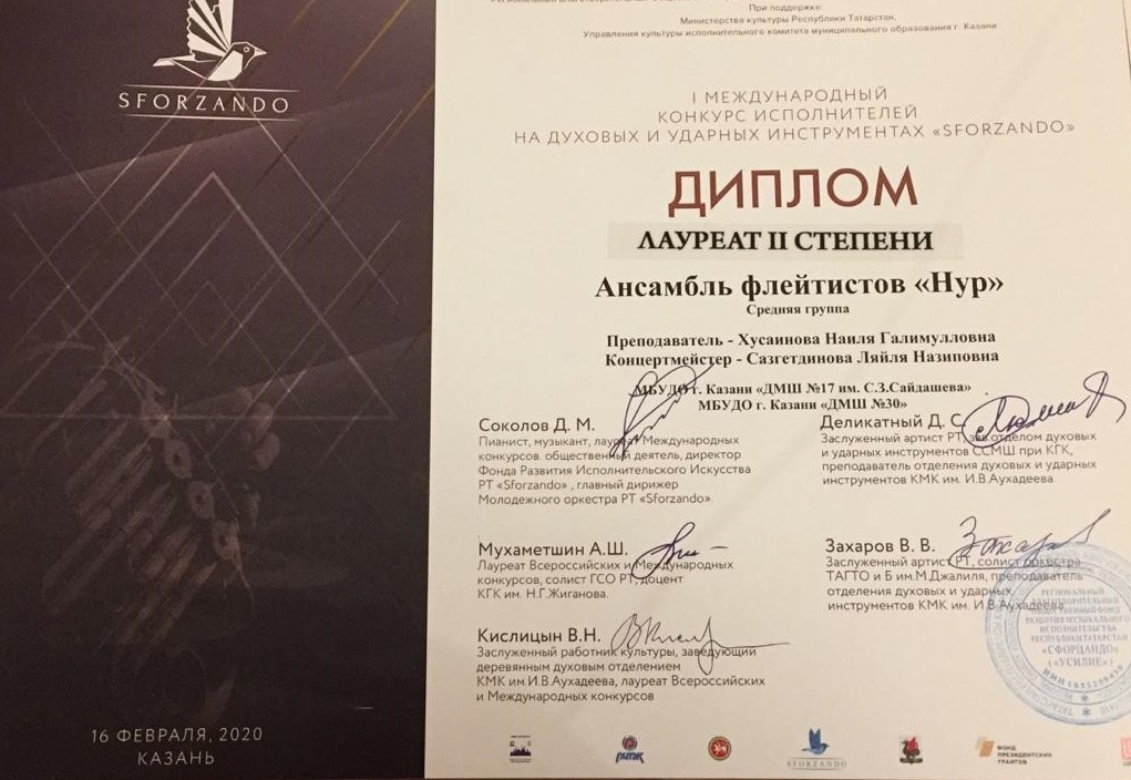 Международный музыкальный конкурс "SFORZANDO" - Хадиуллина Дана - II место