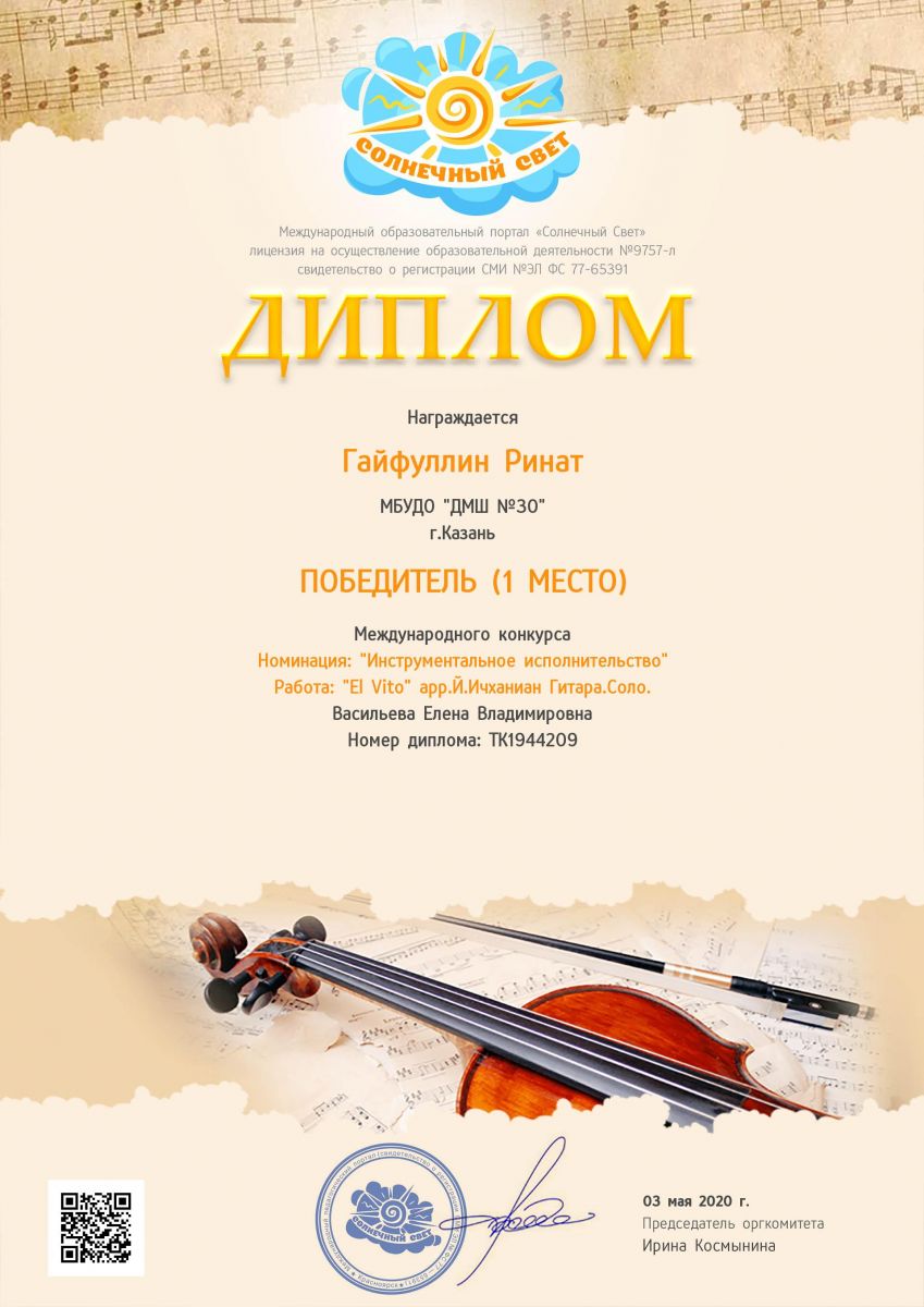 Международный конкурс "Солнечный свет" - Гайфуллин Ринат - I место