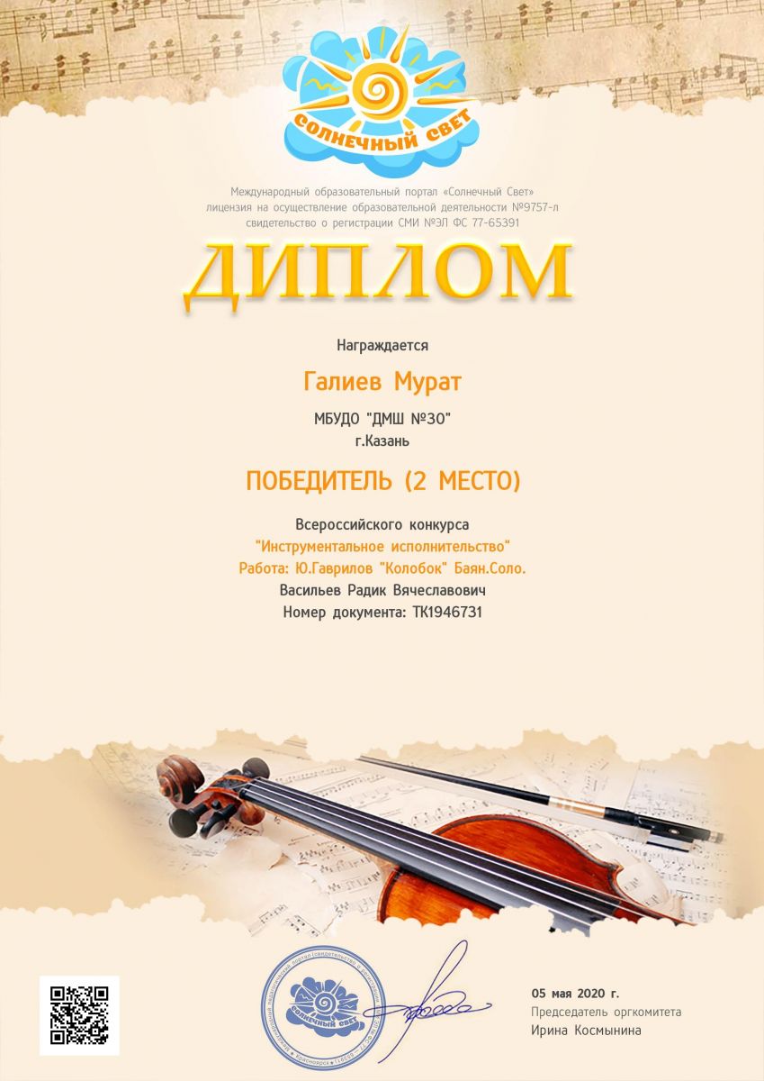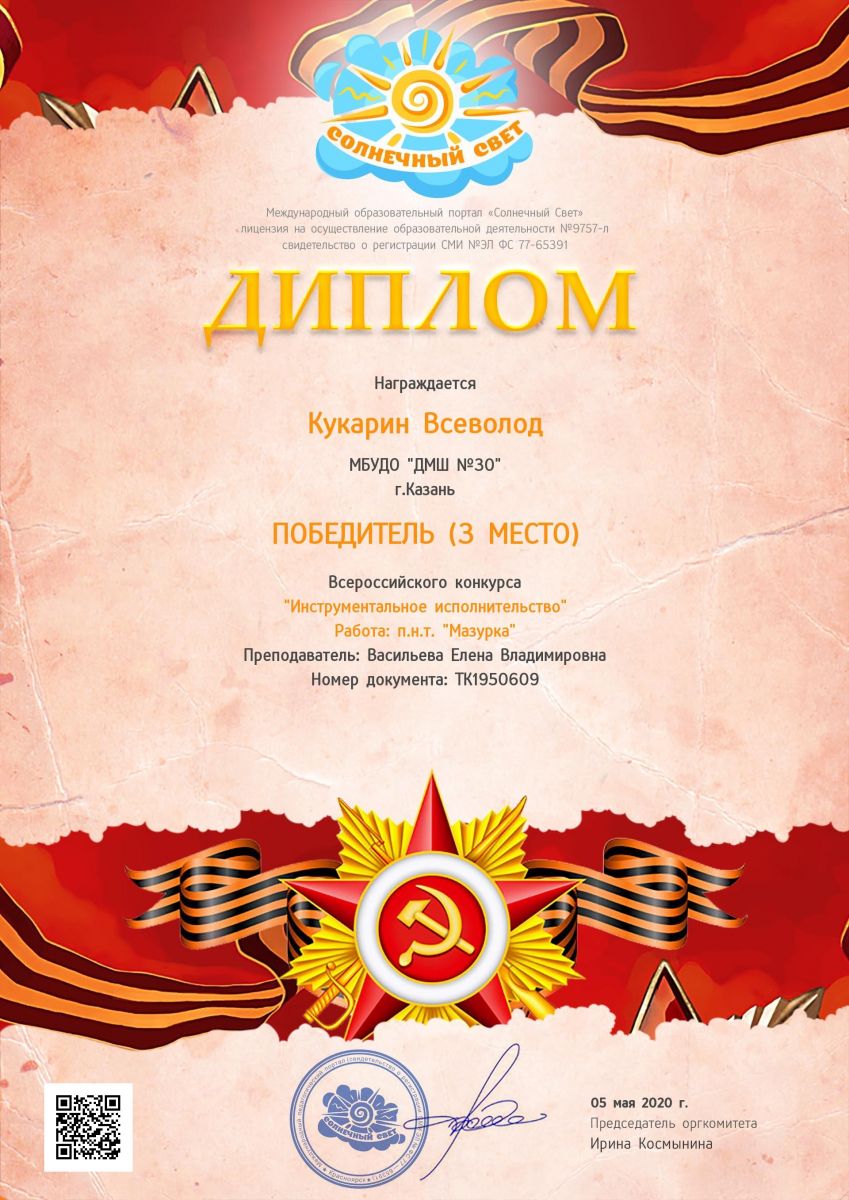 Международный конкурс "Солнечный свет" - Кукарин Всеволод - III место