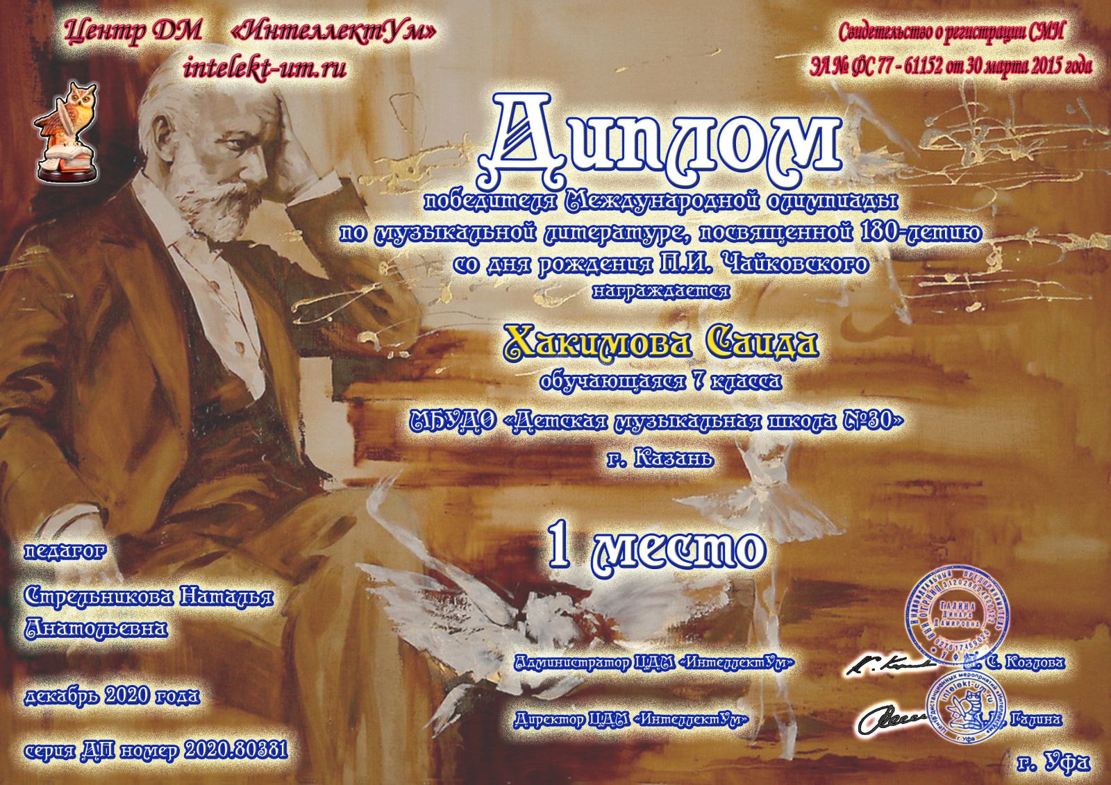 Международный фестиваль-конкурс талантов "Талант и успех" - Мисбахова Сафина - диплом I степени