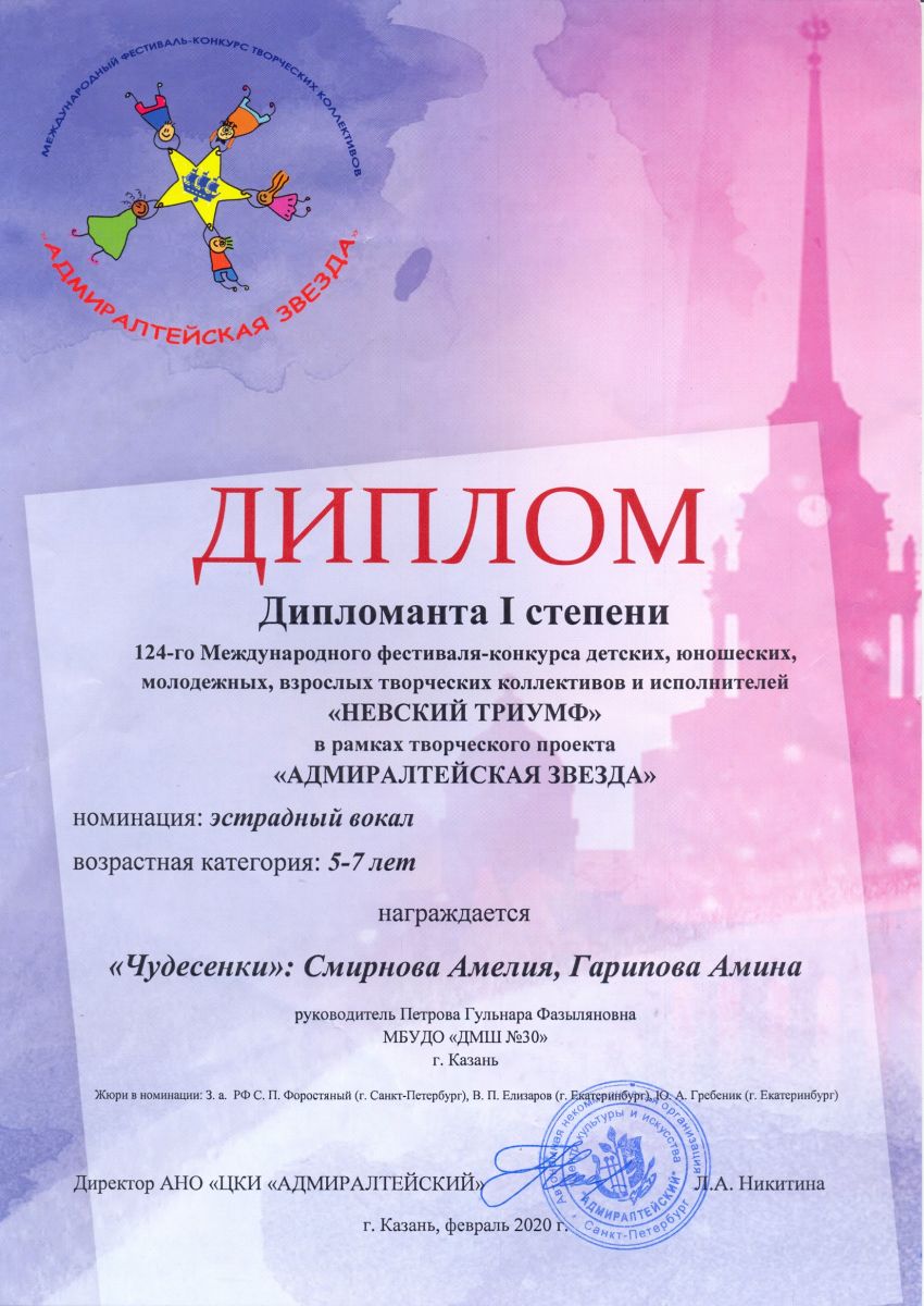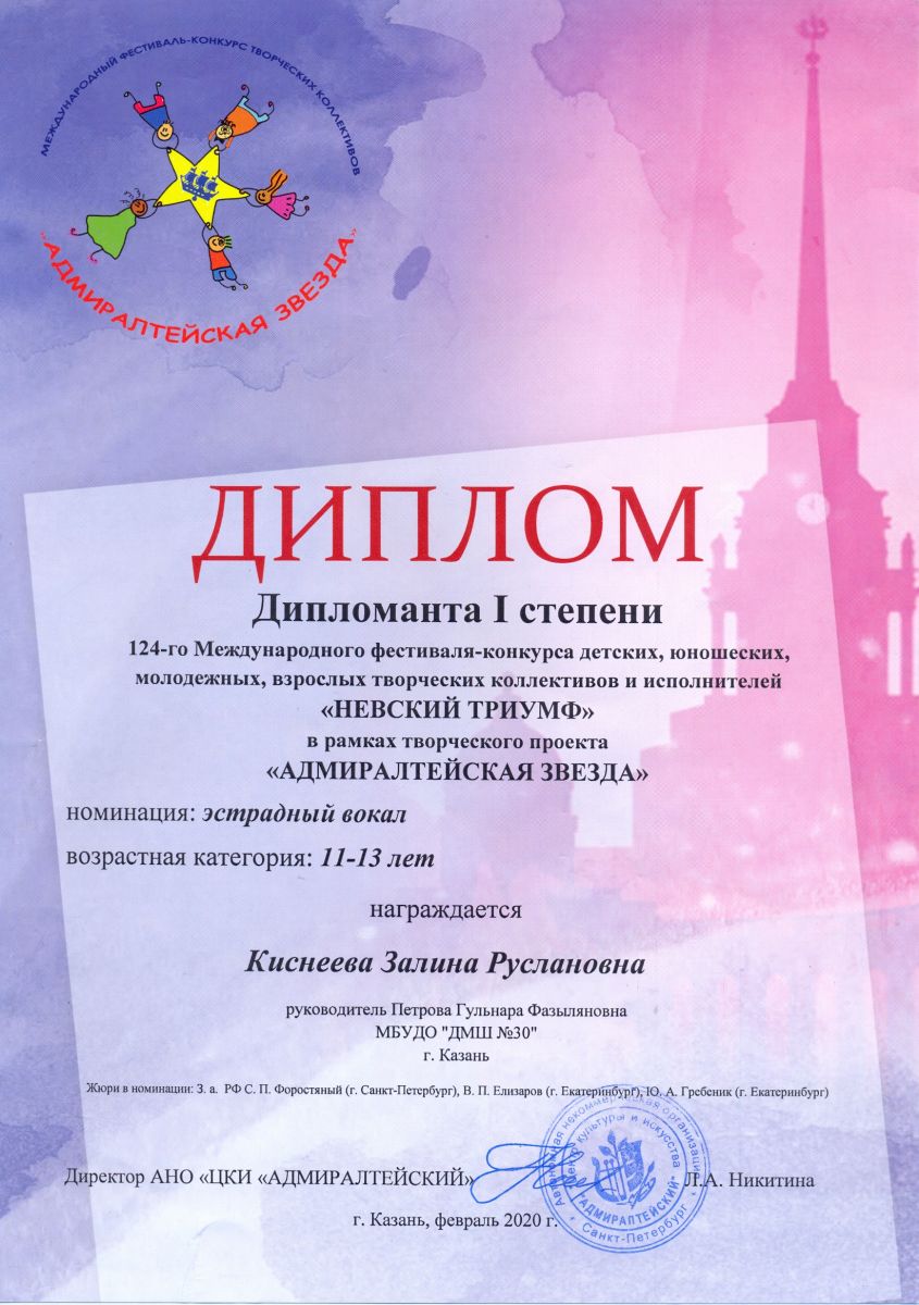 Международный конкурс-фестиваль "Талантиада" - Денисова Елизавета - диплом I степени
