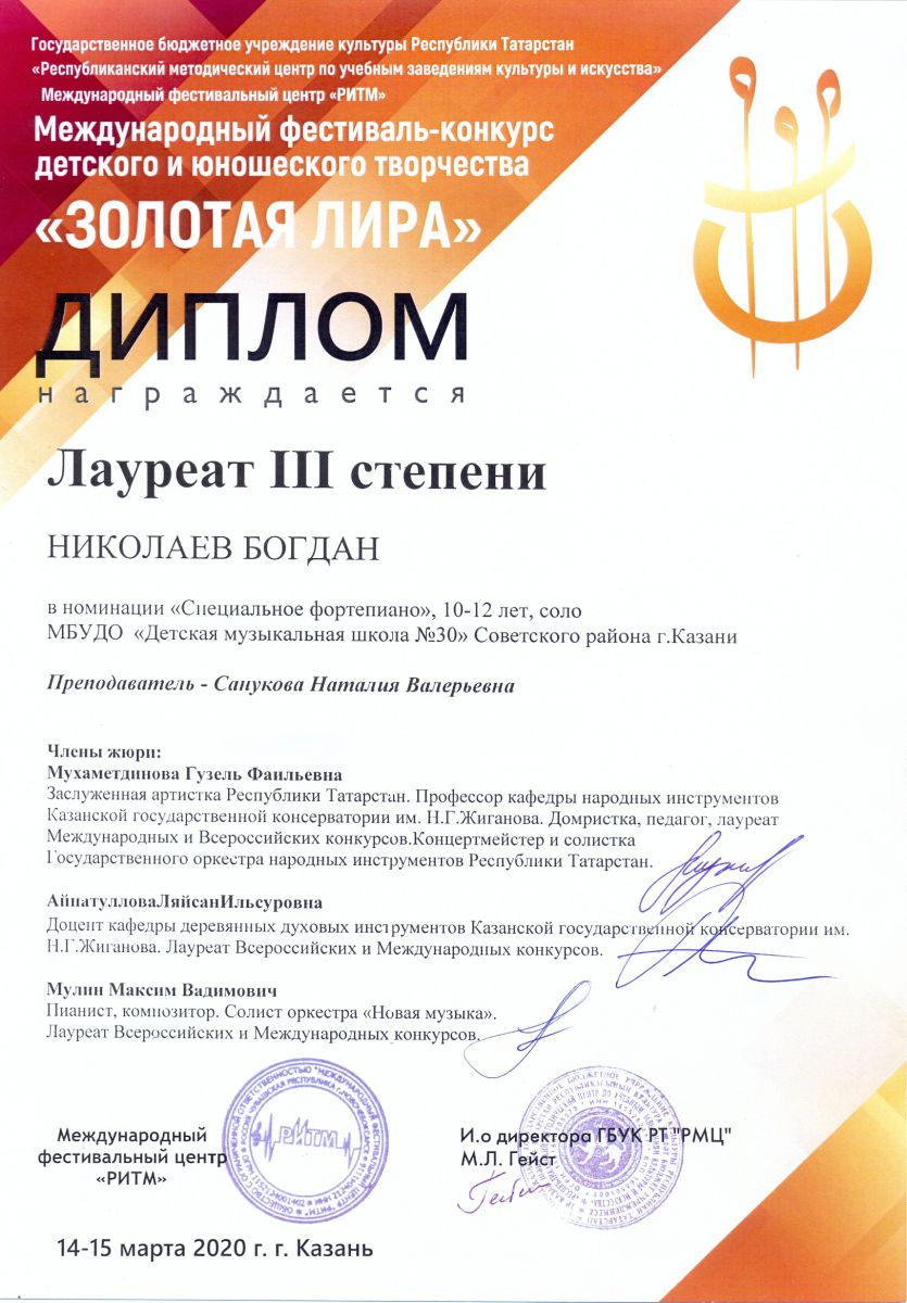 IV Международный конкурс музыкального исполнительства "KAZAN-MUSIC ЙОРТ" - Быков Дмитрий - III место