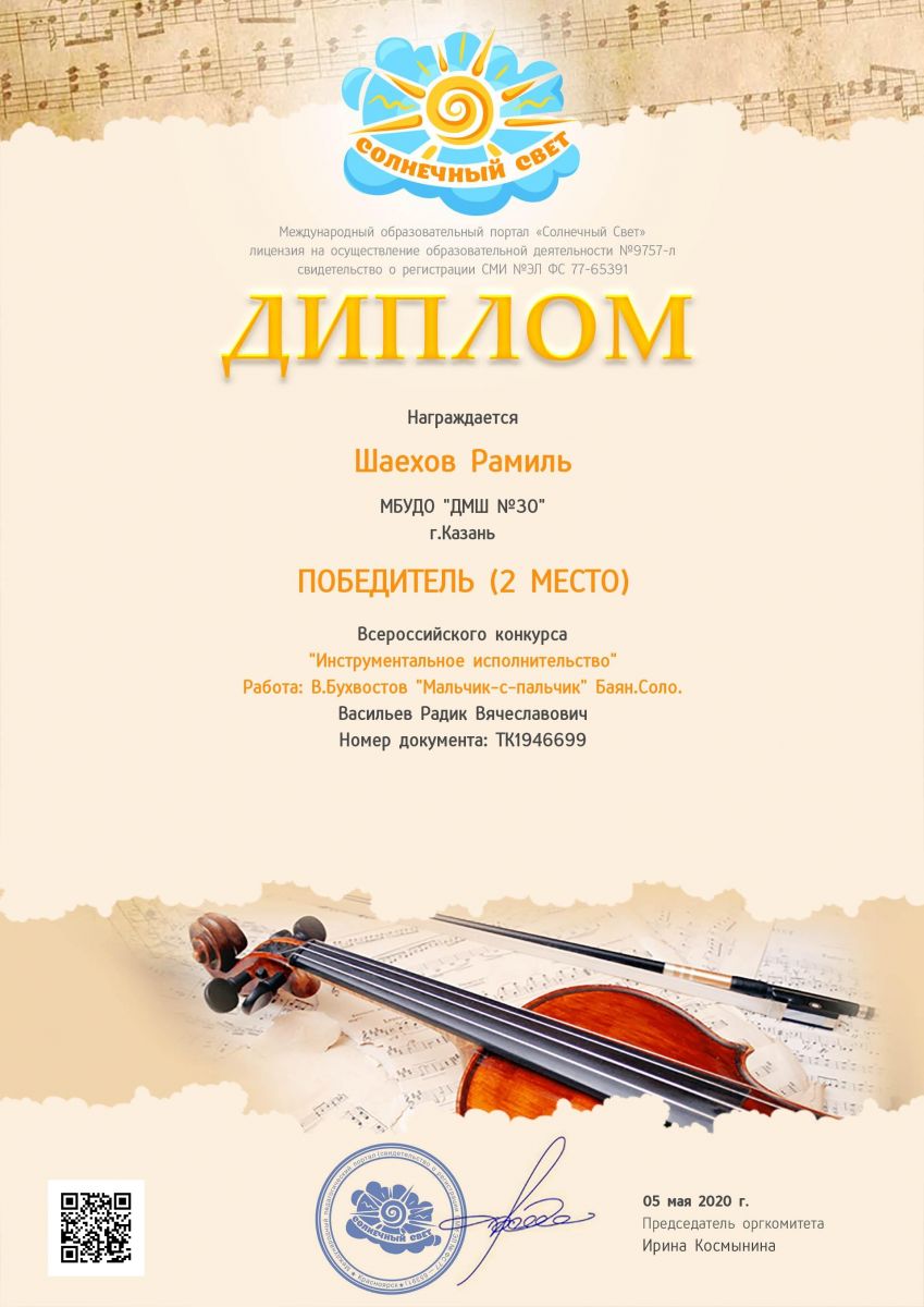 Международный конкурс "Солнечный свет" - Шаехов Рамиль - II место