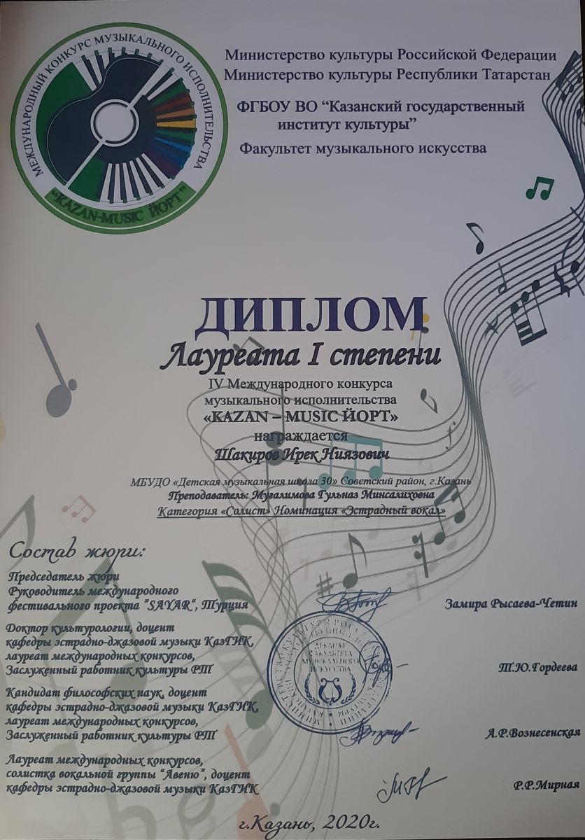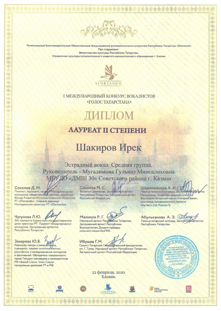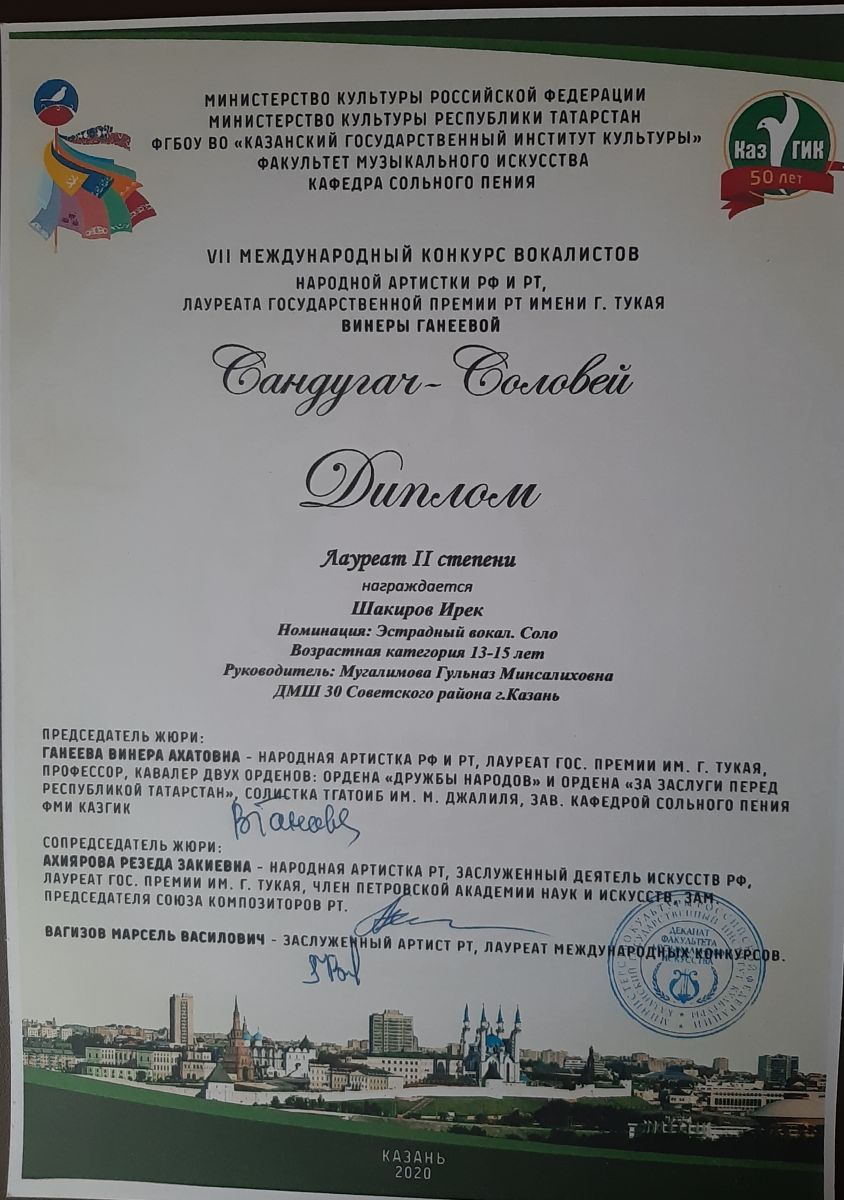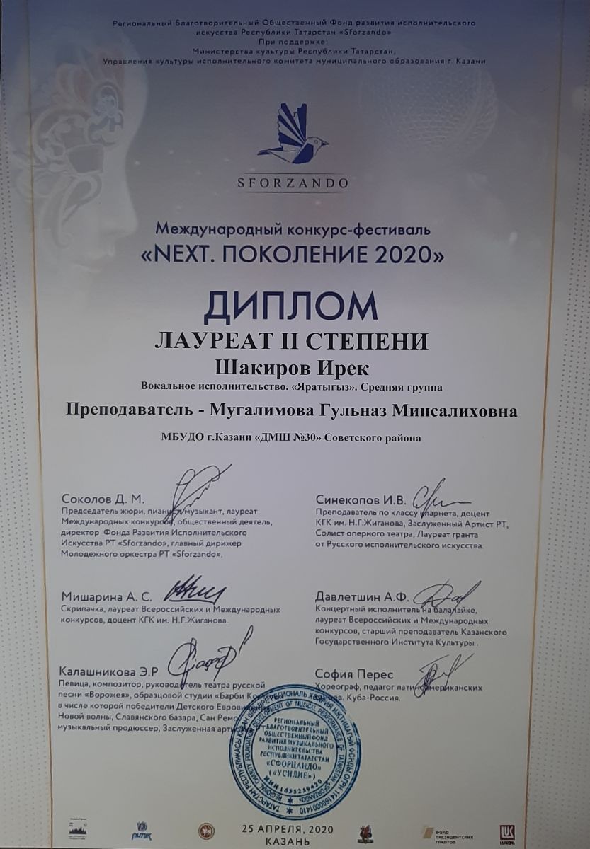 Международный конкурс-фестиваль "NEXT. Поколение 2020" - Шакиров Ирек - II место