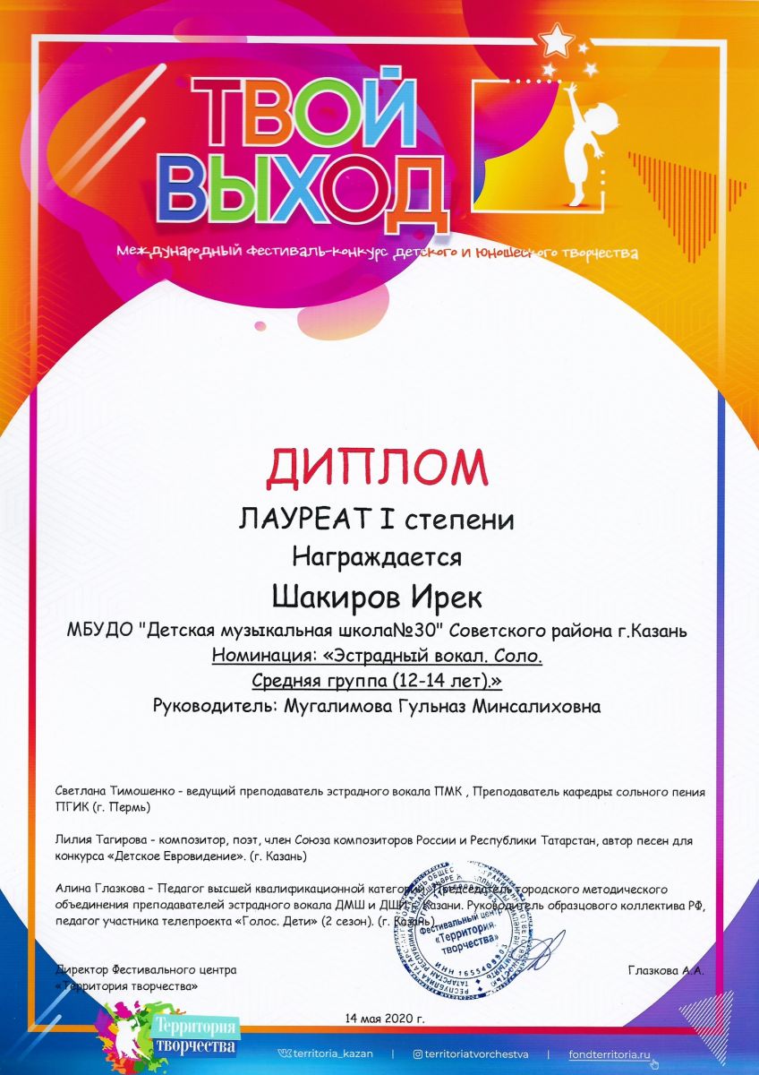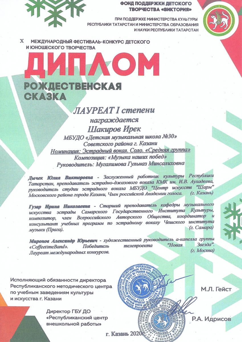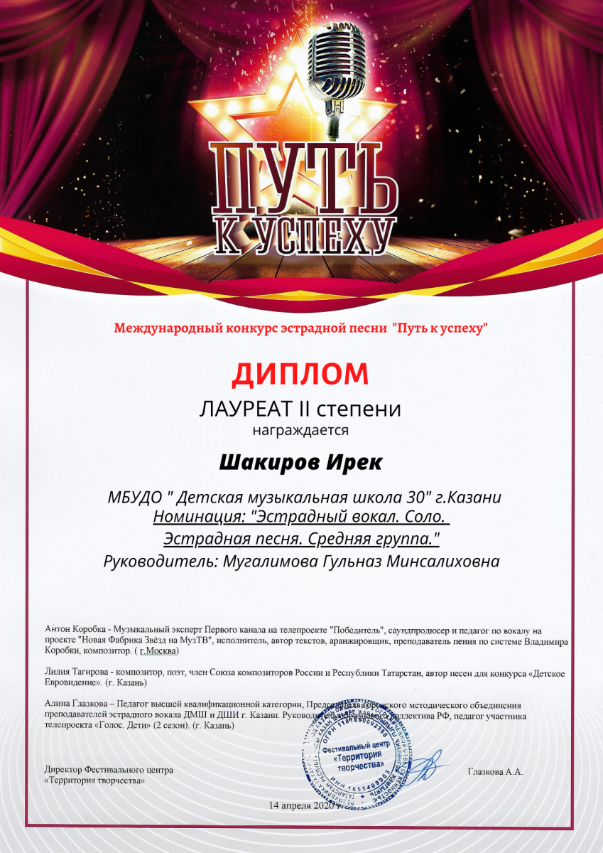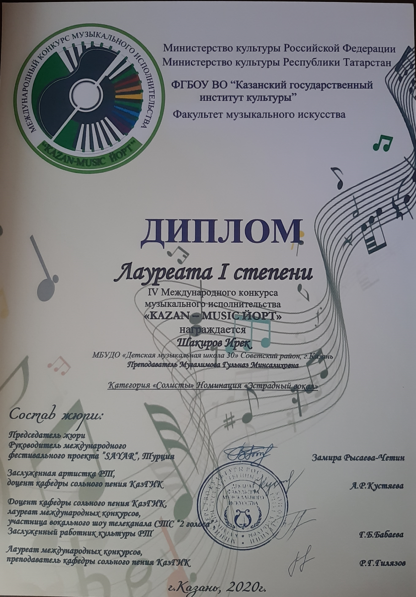Международный конкурс-фестиваль "NEXT. Поколение 2020" - Шакиров Ирек - II место