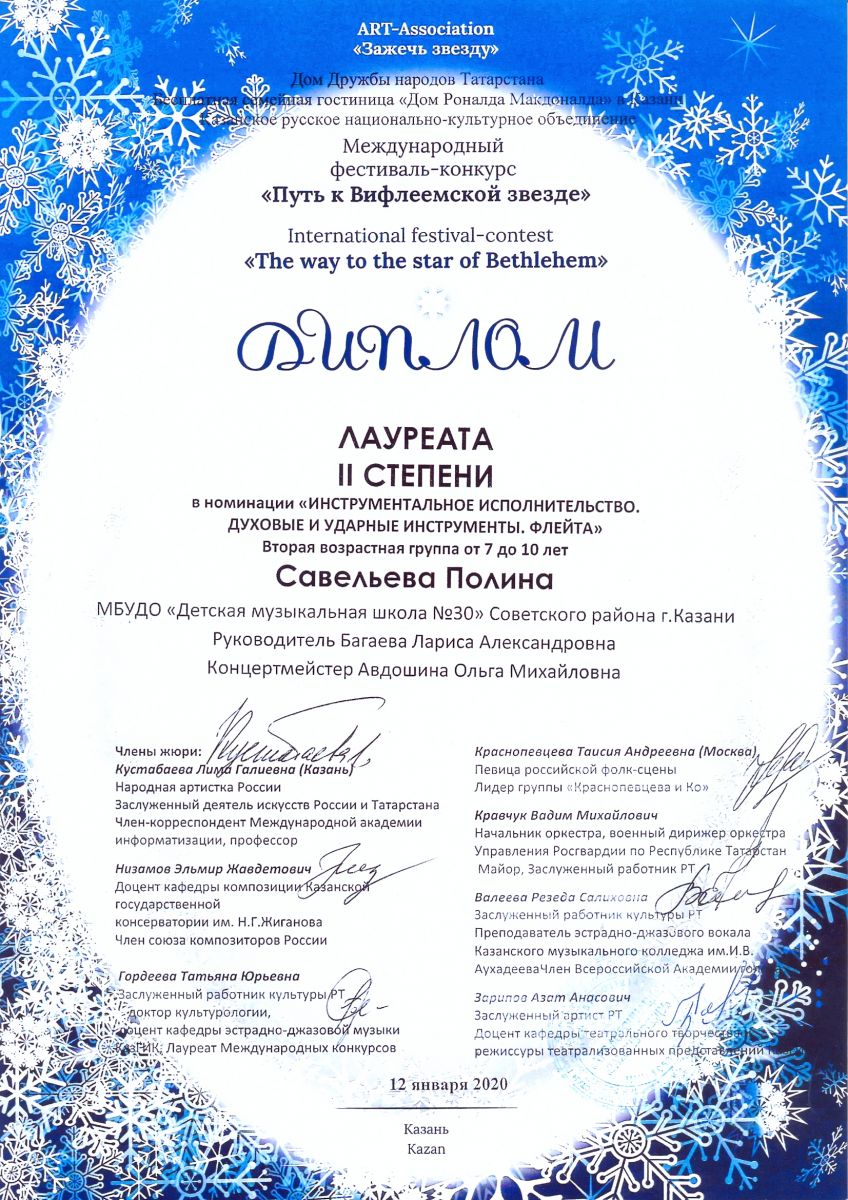 Международный фестиваль-конкурс "Путь к Вифлеемской звезде" - Савельева Полина - II место