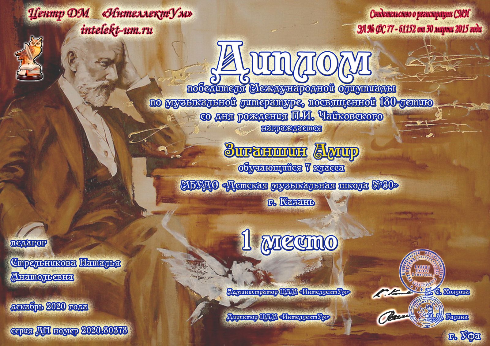 II Международный конкурс пианистов "Моцарт XXI века" - Галиев Амир - дипломант I степени