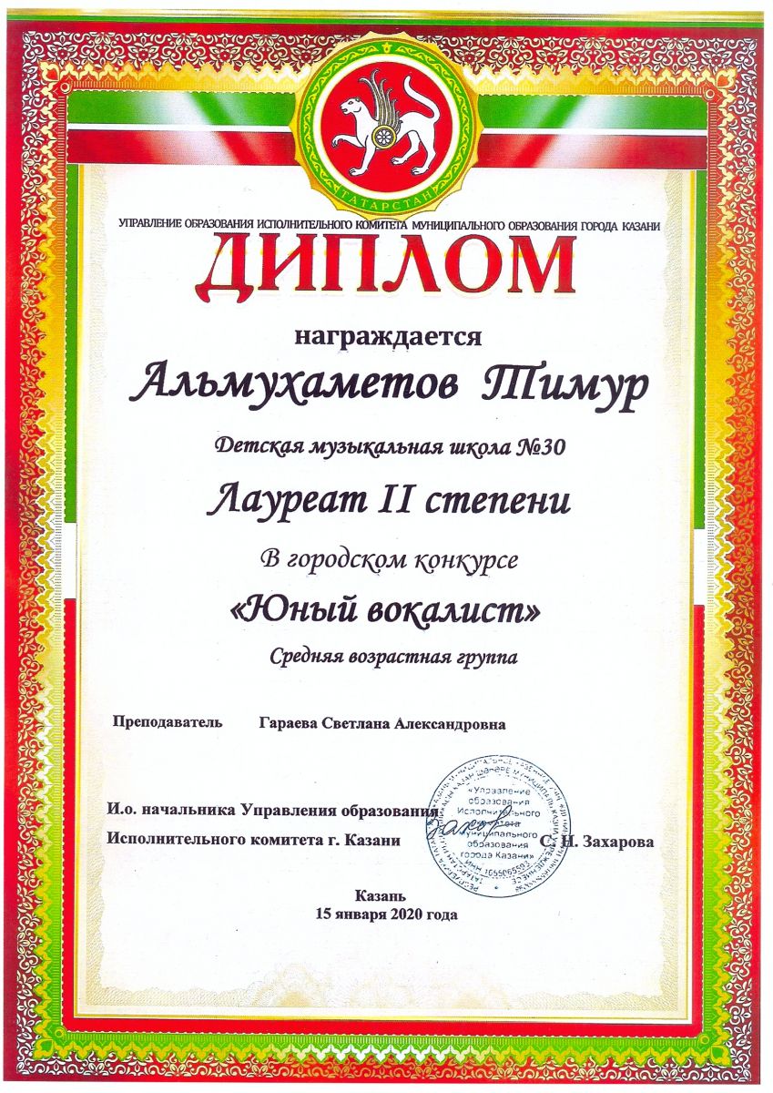 Городской конкурс "Юный вокалист" - Альмухаметов Тимур - II место