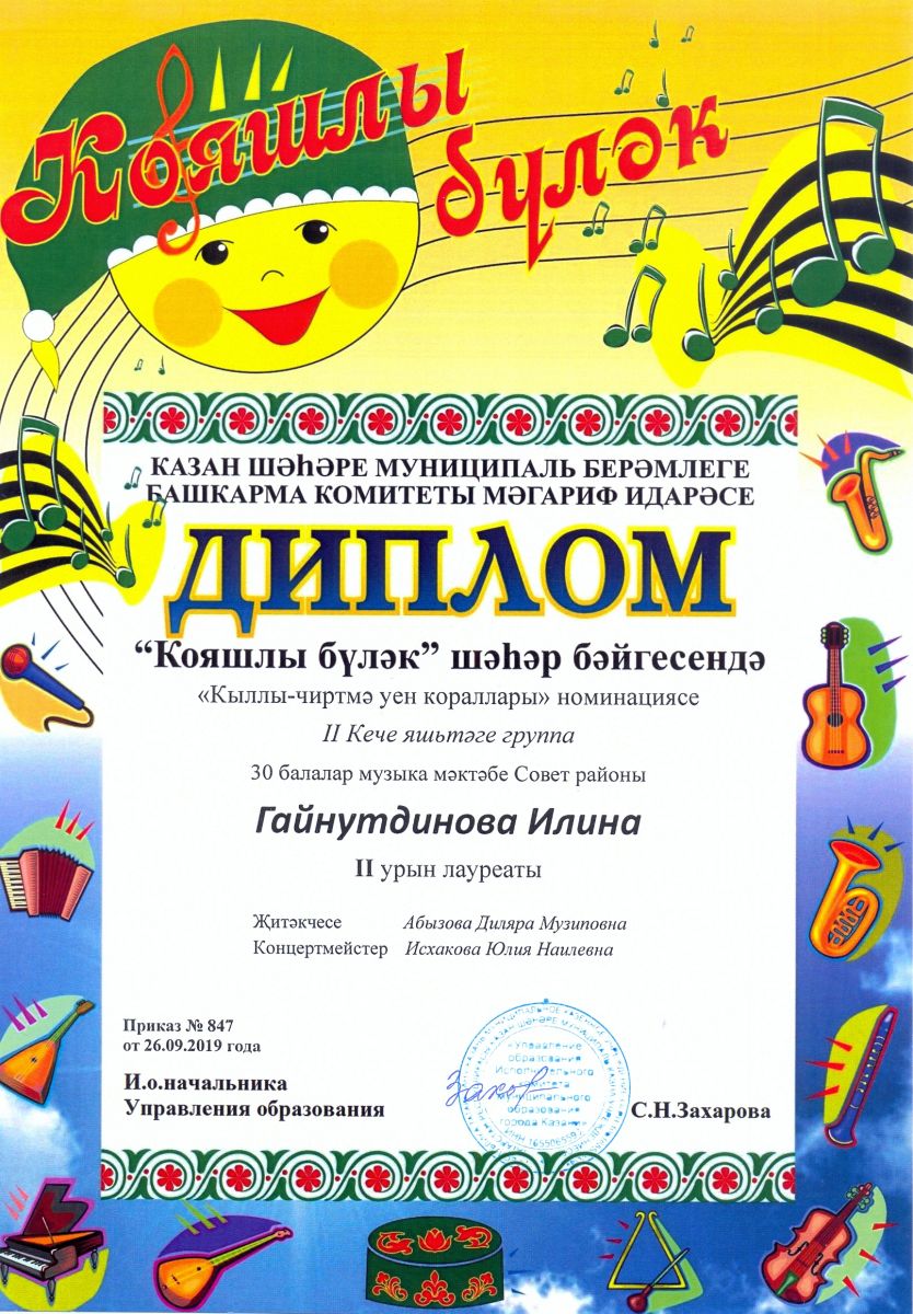 Городской конкурс татарской музыки "Кояшлы бүләк" - Гайнутдинова Илина - II место