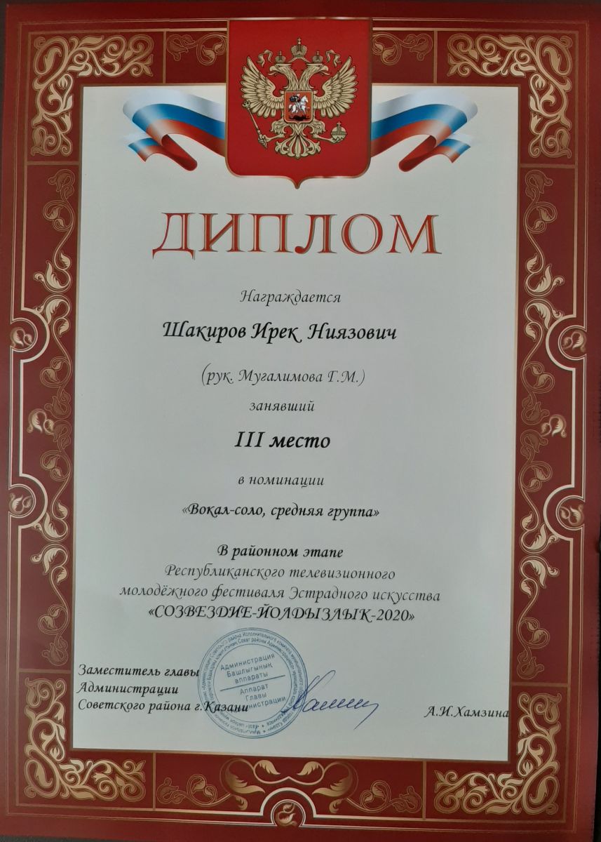 Отборочный тур Республиканского конкурса "Созвездие-Йолдызлык 2020" - Шакиров Ирек III место