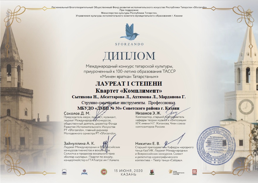 I Международный конкурс исполнителей на народных инструментах "SFORZANDO" - Газизова Г.Т. - Благодарственное письмо