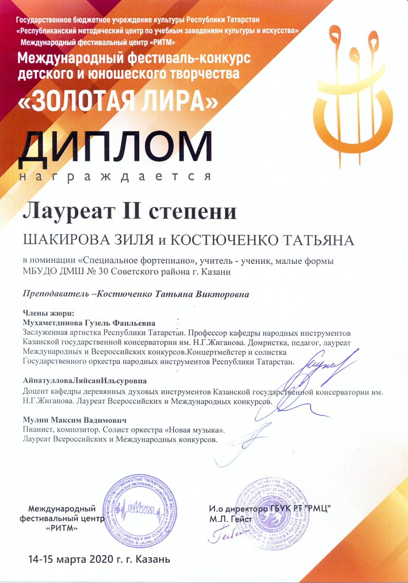 Международный фестиваль-конкурс детского и юношеского творчества "ЗОЛОТАЯ ЛИРА" - Шакирова Зиля и Костюченко Т.В. - II место
