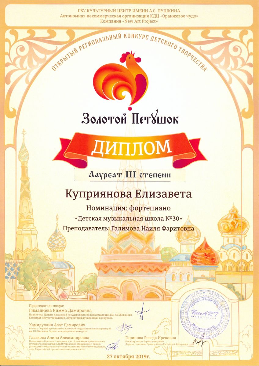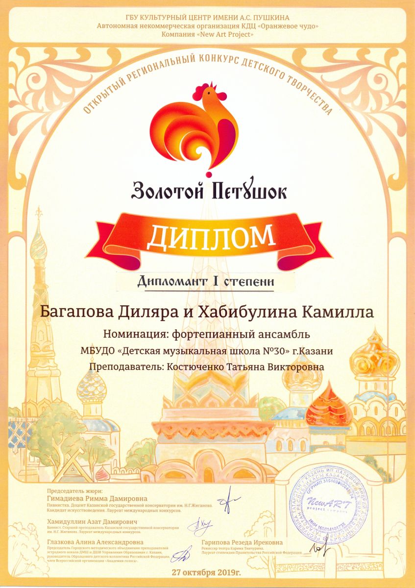 Открытый региональный конкурс детского творчества "Золотой петушок" - Шакирова Зиля - II место