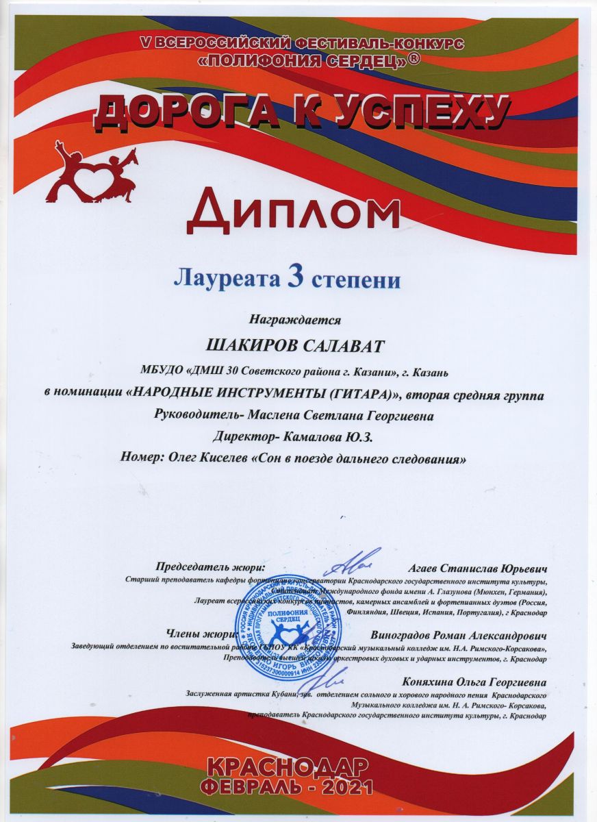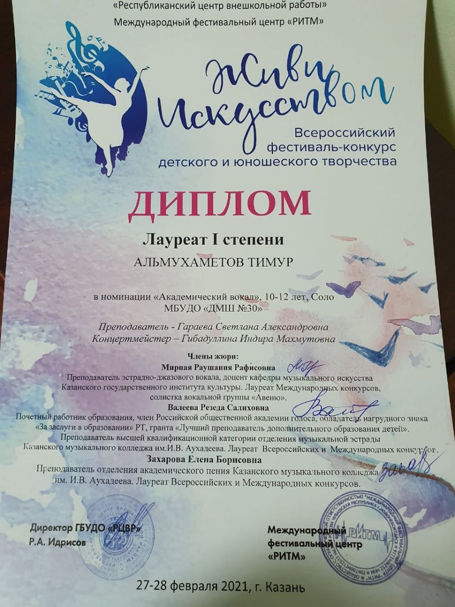 Всероссийский конкурс искусств "Ритмы весны" - Ахметзянов Муса - III место