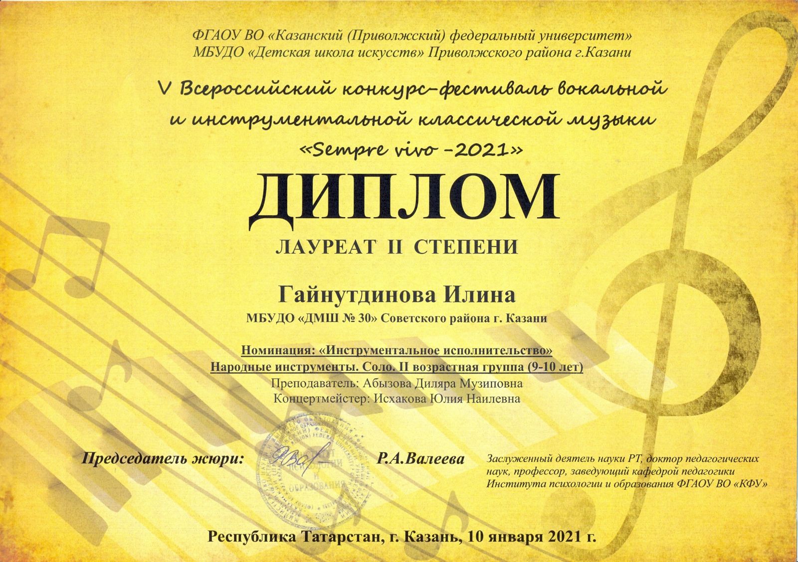 XIV Всероссийский конкурс для детей и молодежи "Время талантливых" - Газизова Самира - II место