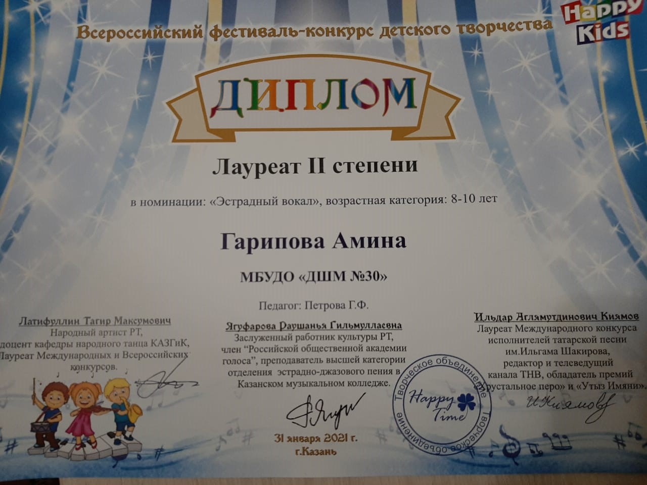 Всероссийский фестиваль-конкурс детского творчества "Happy Kids" - Гарипова Амина - II место