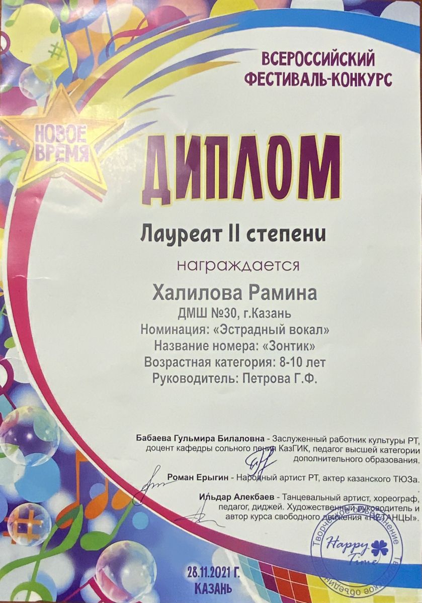 Всероссийский фестиваль-конкурс "Новое время" - Халилова Рамина - II место