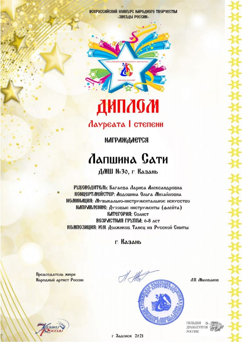 Всероссийский конкурс "Звезды России" - Лапшина Сати - I место