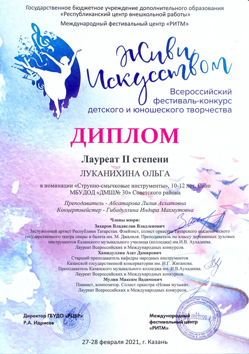 Всероссийский конкурс искусств "Территория творчества" - Мухаметзянова Рамина - III место