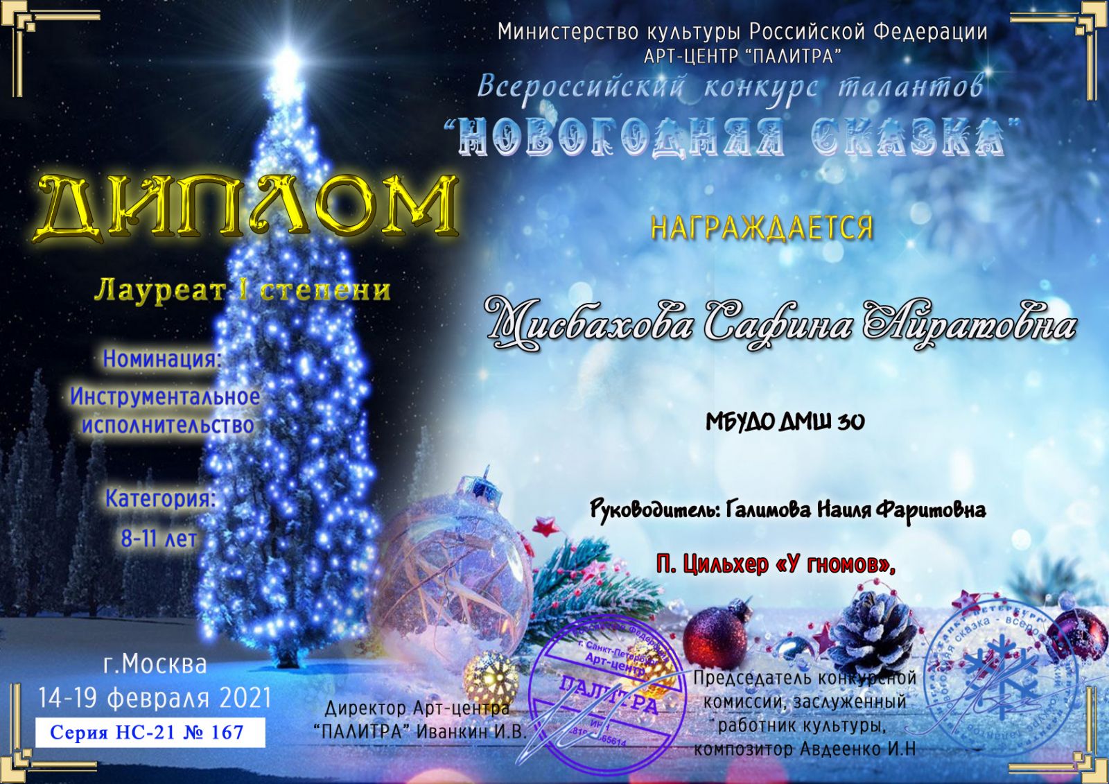 Всероссийский конкурс талантов "Новогодняя сказка" - Мисбахова Сафина - I место