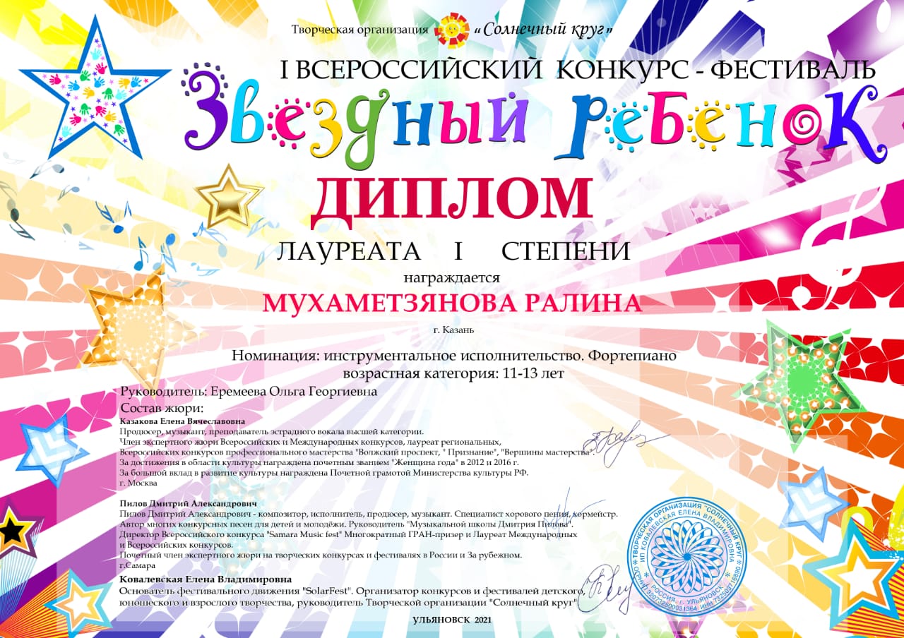I Всероссийский конкурс-фестиваль "Звездный ребенок" - Мухаметзянова Ралина - I место